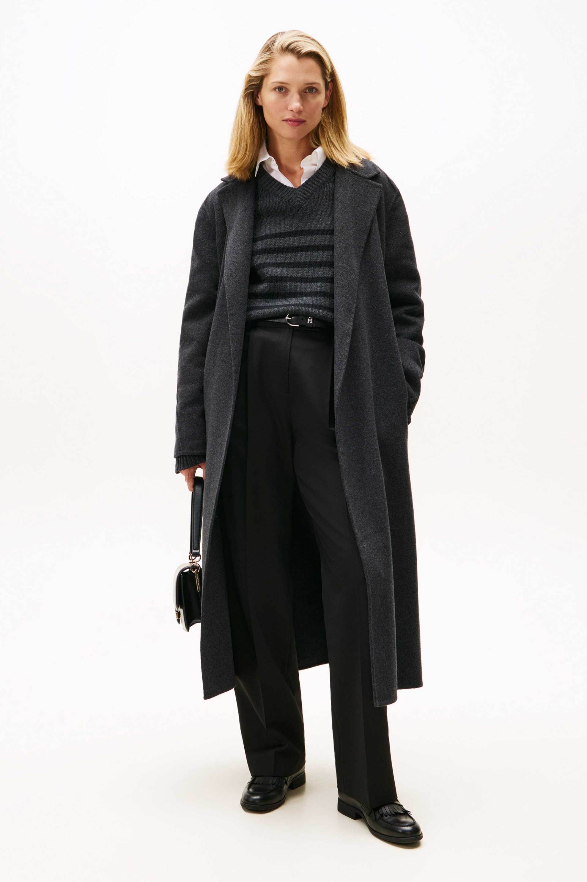 Γυναικείο παλτό. Μονόχρωμο. Κλείσιμο με ζώνη. Τσέπες στο πλάι. Προέλευση: TN. 60% μαλλί, 40% polyester SARKK ΑΕ