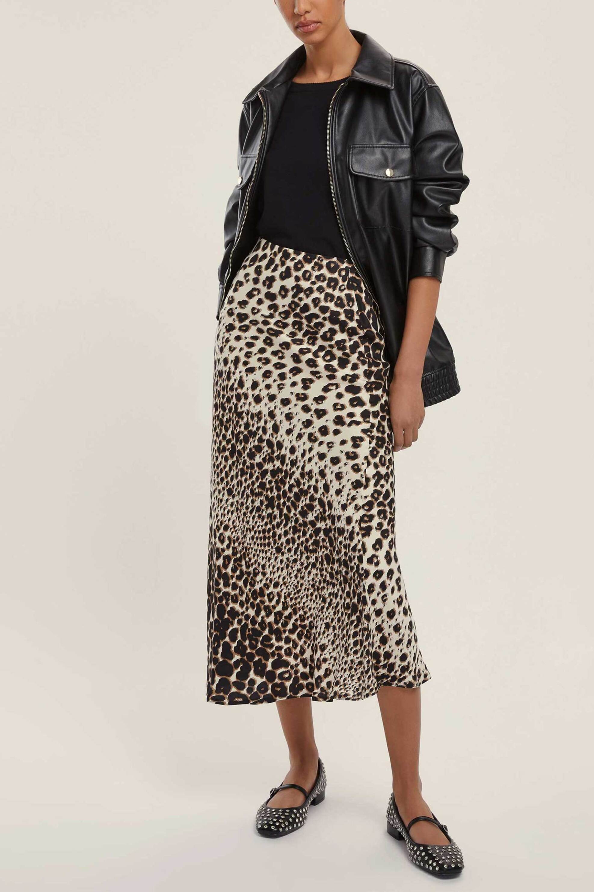 Γυναικεία midi φούστα. Ψηλόμεση. Ελαστική μέση. Animal print. Straight fit. Προέλευση: RO. 100% βισκόζη DEDIMAX SRLU