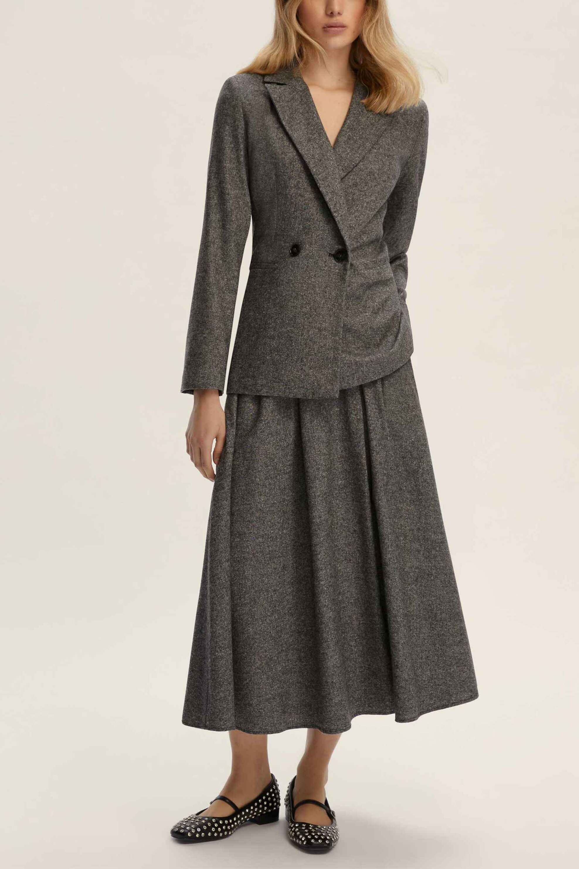 Γυναικεία φούστα. Ψηλόμεση. Ελαστική μέση. Flared fit. Τσέπες στο πλάι. Προέλευση: AL. 40% μαλλί, 30% βισκόζη, 30% polyester DEDIMAX SRLU