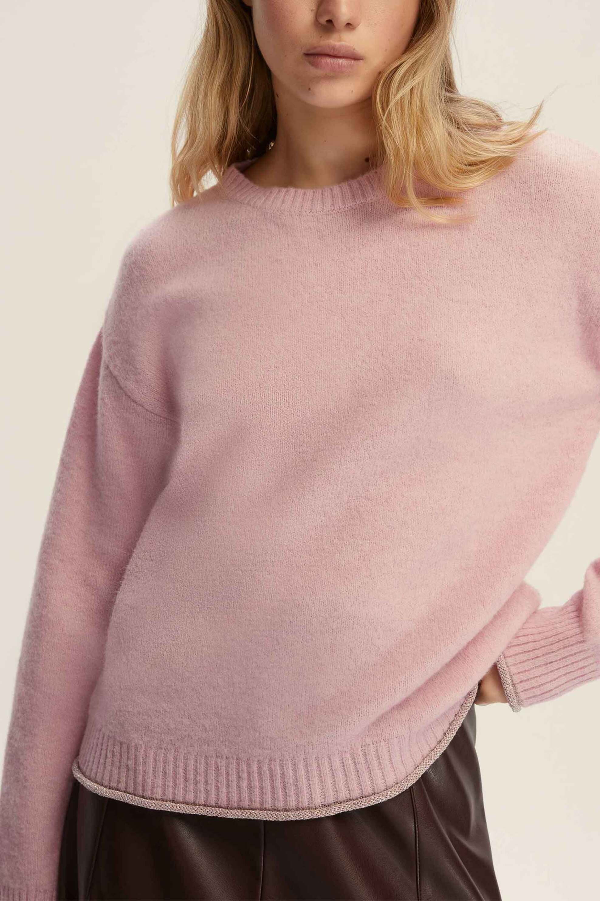 Γυναικεία πλεκτή μπλούζα. Στρογγυλή λαιμόκοψη. Μακρύ μανίκι. Lurex λεπτομέρεια. Straight fit. Προέλευση: RO. 60% acrylic, 14% polyamide, 10% polyester, 8% βισκόζη, 8% μαλλί DEDIMAX SRL