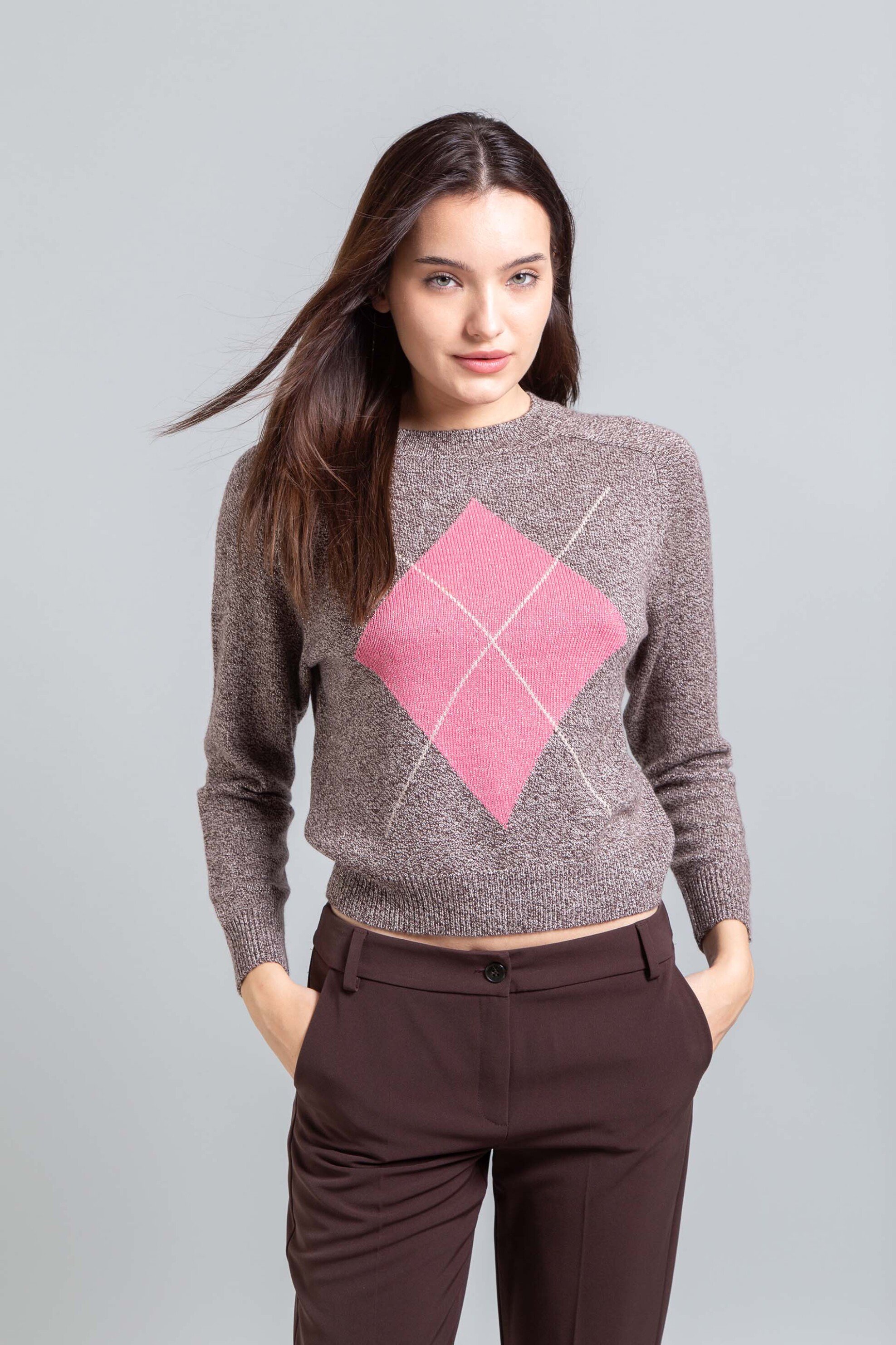 Γυναικεία πλεκτή μπλούζα. Στρογγυλή λαιμόκοψη. Μονόχρωμη. Μακρύ μανίκι. Σχέδιο με ρόμβο στην πλέξη. Προέλευση: CN. 75% βαμβάκι, 16% polyamide DEDIMAX SRL