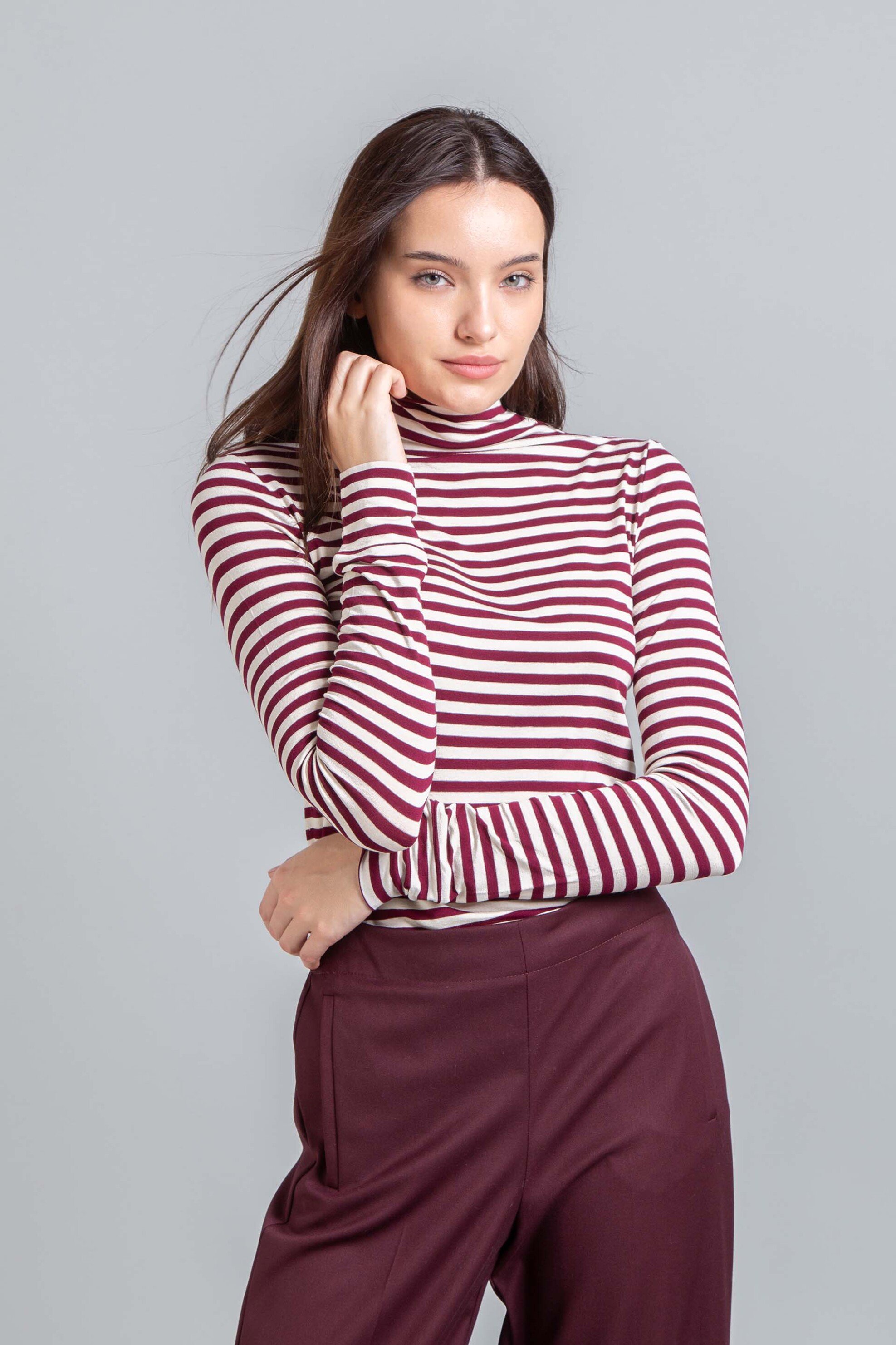 Γυναικεία μπλούζα. Ριγέ σχέδιο. Μακρύ μανίκι. Ζιβάγκο. Προέλευση: TN. 96% βισκόζη, 4% elastane DEDIMAX SRL