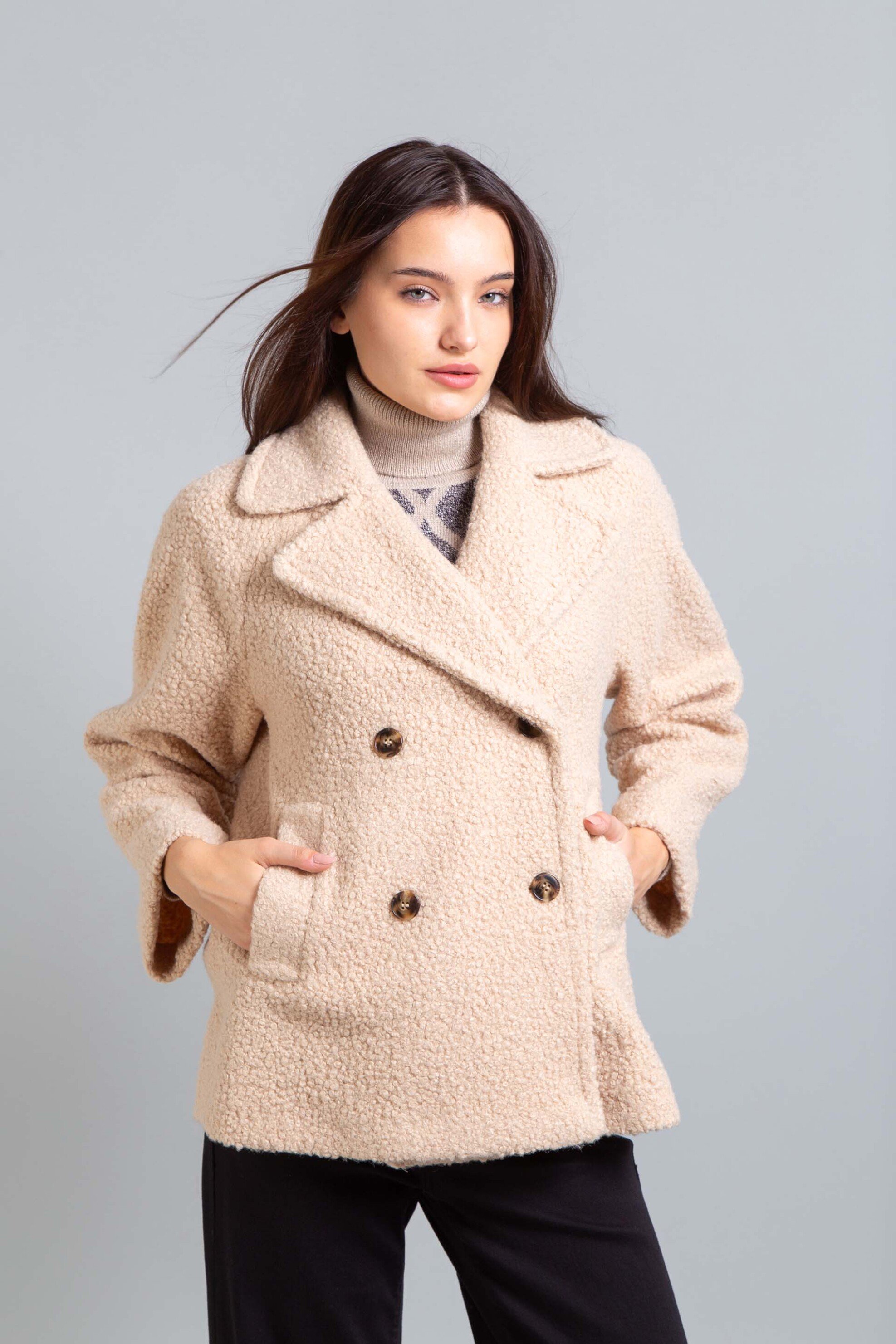 Γυναικείο jacket μπουκλέ. Γιακάς. Κλείσιμο με κουμπιά. Τσέπες στο πλάι. Μακρύ μανίκι. Προέλευση: MA. 100% polyester DEDIMAX SRL