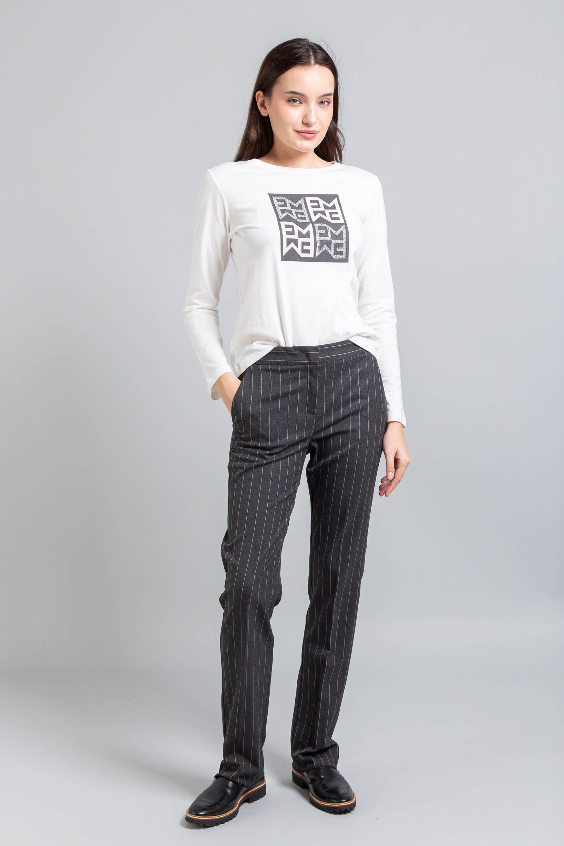 Γυναικείο παντελόνι. Kλείσιμο με φερμουάρ και γάντζο. Tσέπες λοξές στο πλάι. Σχέδιο με ρίγες. Προέλευση: TN. 69% polyester, 29% βισκόζη, 2% elastane DEDIMAX SRL