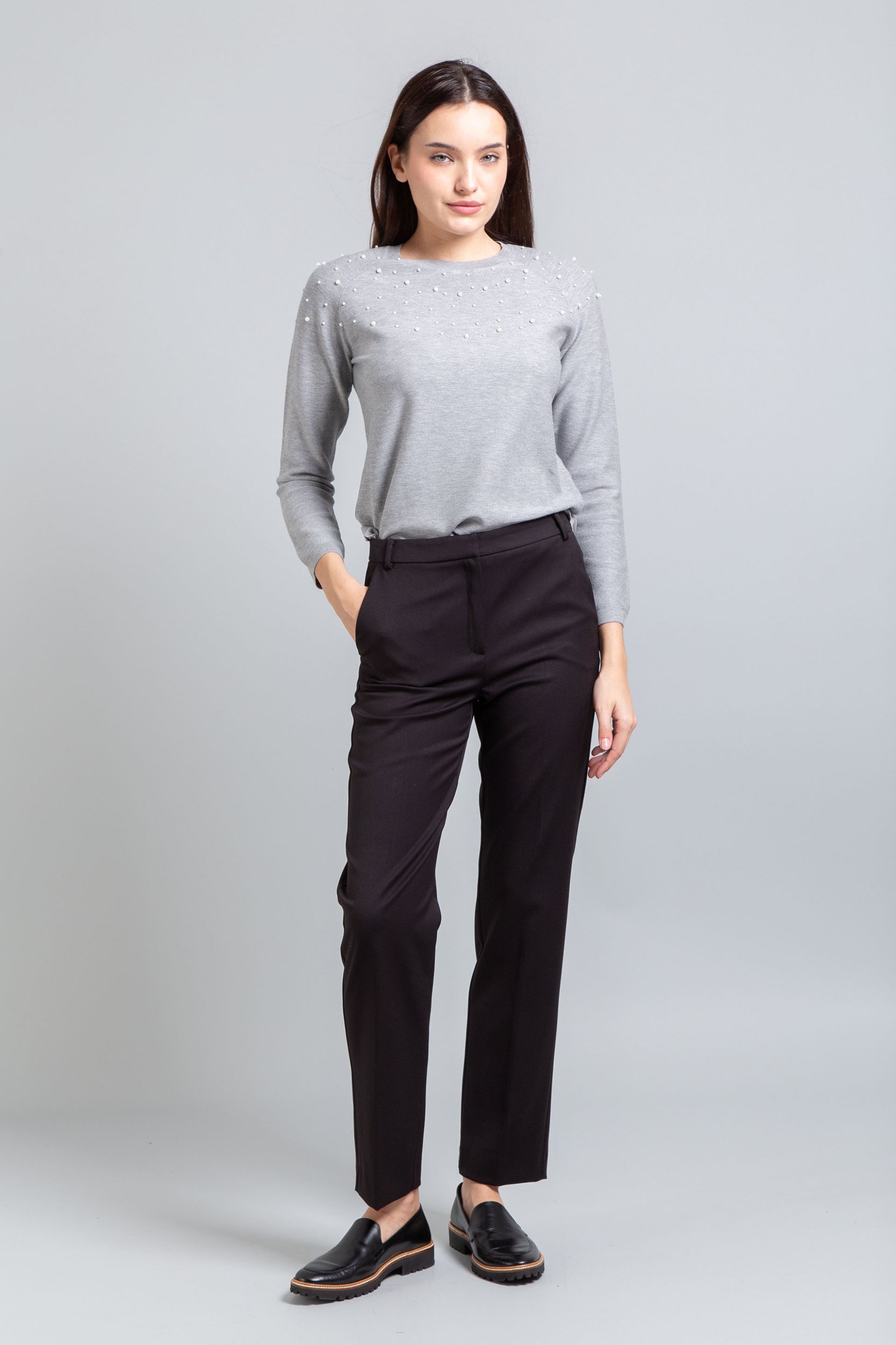 Γυναικείο παντελόνι. Μονόχρωμο. Kλείσιμο με φερμουάρ και γάντζο. Tσέπες λοξές στο πλάι. Slim fit. Προέλευση: MA. 67% polyester, 31% βισκόζη, 2% elastane DEDIMAX SRL