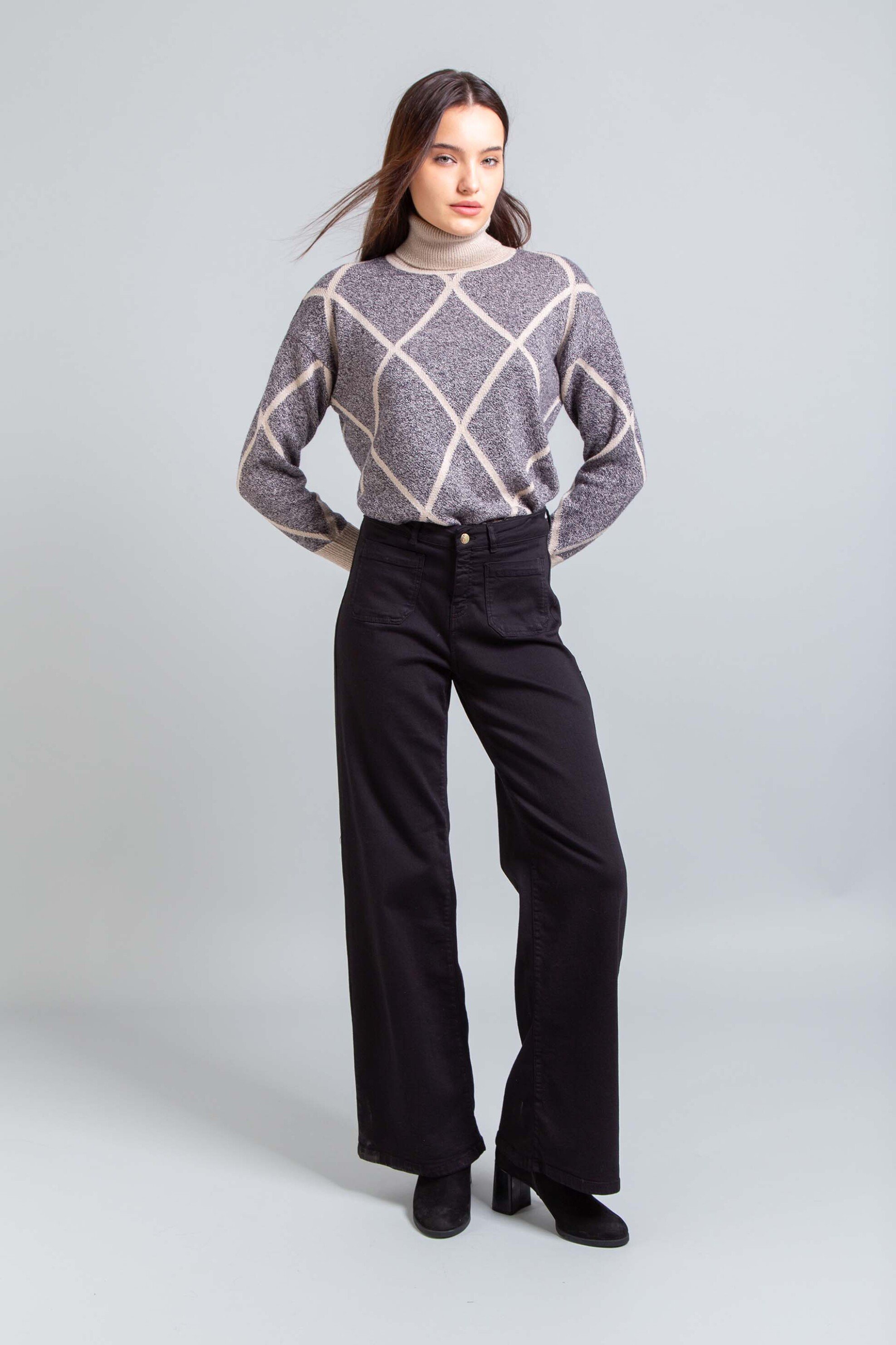 Γυναικείο παντελόνι. Τσέπες μπροστά και πίσω. Kλείσιμο με φερμουάρ και κουμπί. Wide leg. Προέλευση: TN. 44% βισκόζη, 36% βαμβάκι, 15% lyocell, 4% polyester, 1% elastane DEDIMAX SRLU