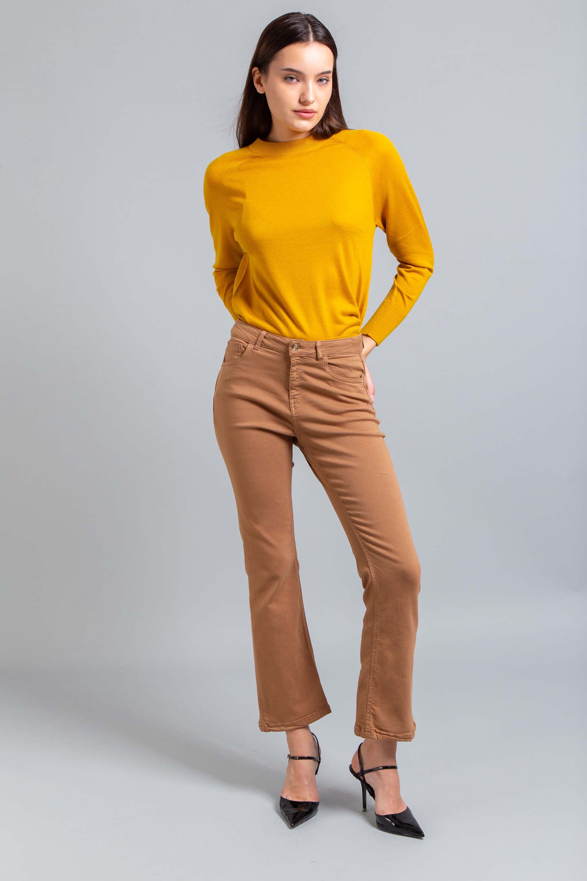Γυναικείο παντελόνι. Πεντάτσεπο. Kλείσιμο με φερμουάρ και κουμπί. Regular fit. Flared leg. Προέλευση: TN. 44% βισκόζη, 36% βαμβάκι, 15% lyocell, 4% polyester, 1% elastane DEDIMAX SRLU
