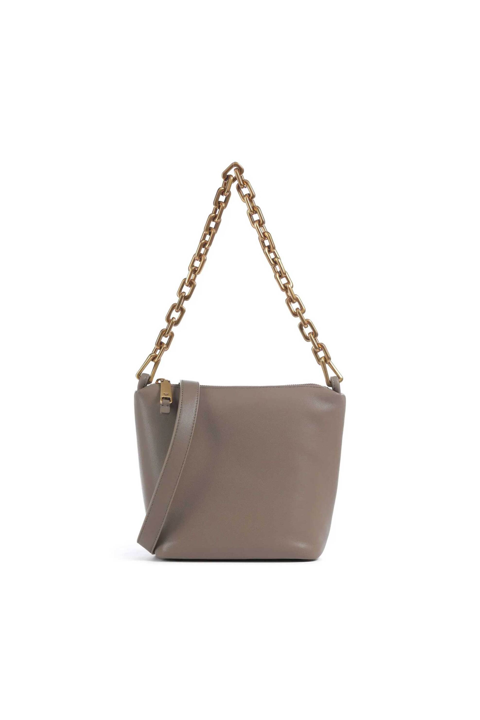 Γυναικεία τσάντα ώμου. Λογότυπο. Κλείσιμο με φερμουάρ. Αποσπώμενο και ρυθμιζόμενο λουράκι ώμου. Αλυσίδα ώμου. Διαστάσεις: 17 x 19 x 8 cm. Προέλευση: CN. 100% δέρμα BALMI TRADING AND INVESTMENTS LTD
