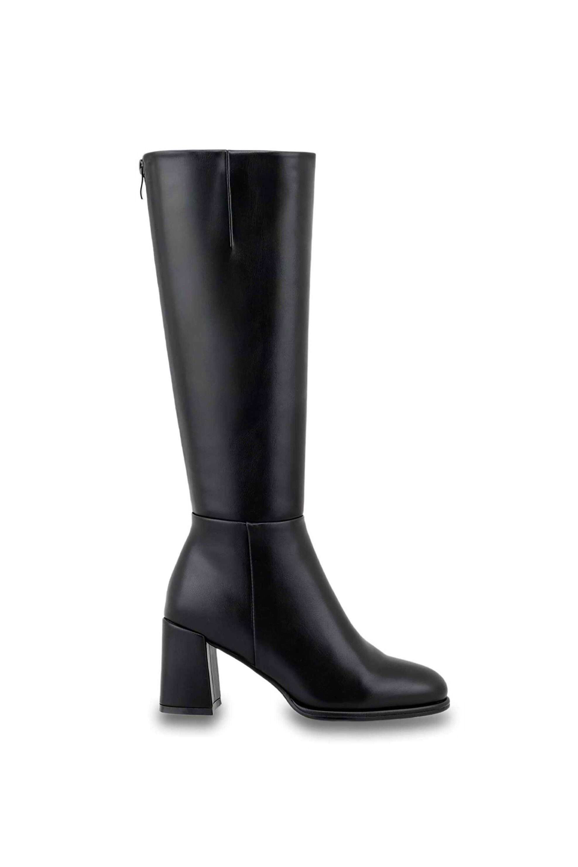 Γυναικείες μπότες. Μονόχρωμες. Κλείσιμο με φερμουάρ. Χοντρό τακούνι. Ύψος τακουνιού: 7,5 cm. Περιφέρεια γάμπας: 32 cm. Συνθετικό ΤΣΑΚΙΡΗΣ ΜΑΛΛΑΣ ΑΕ