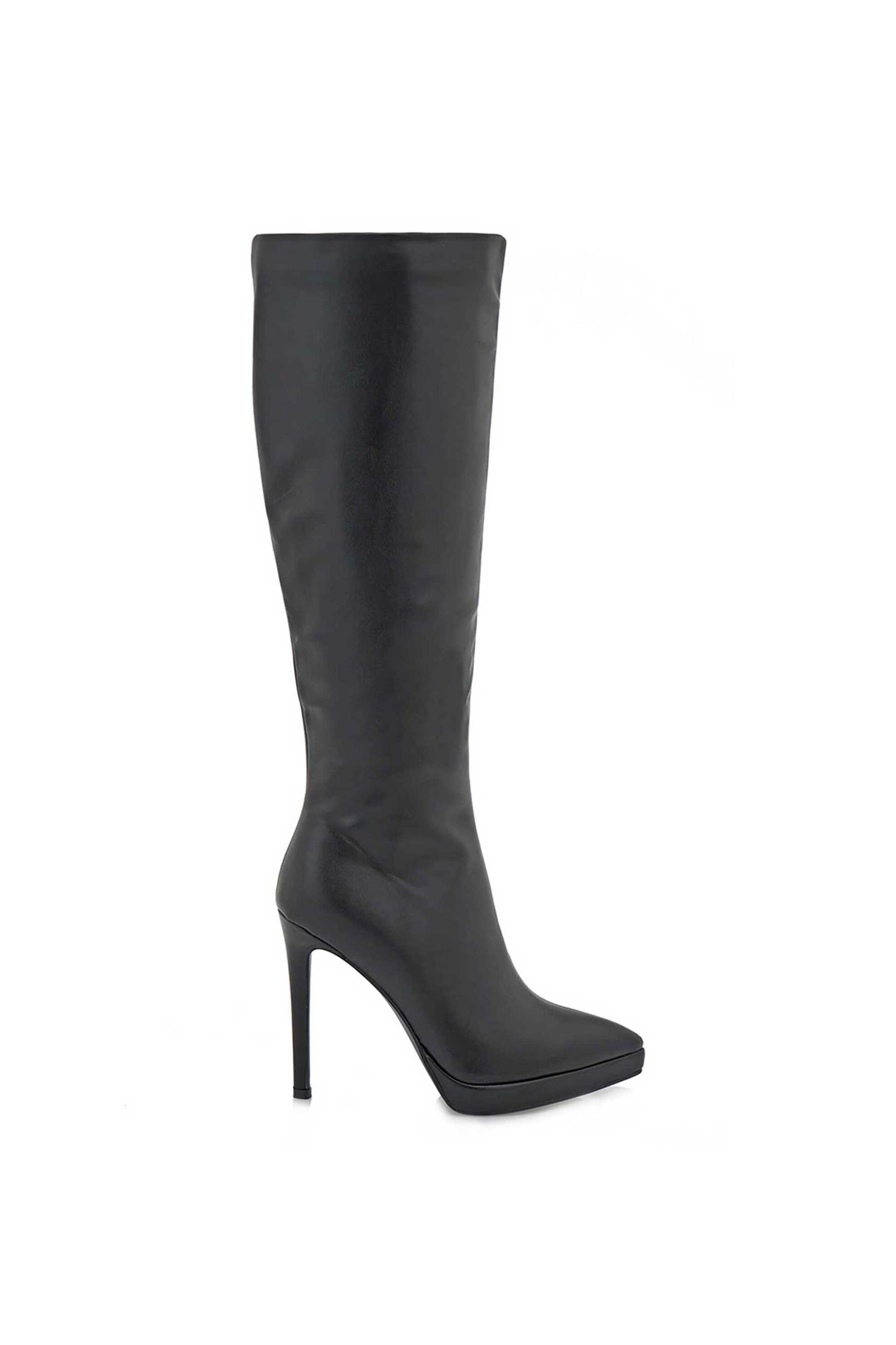 Γυναικείες μπότες. Μυτερές. Κλείσιμο με φερμουάρ. Ύψος τακουνιού: 11,5 cm. Περιφέρεια γάμπας: 34 cm. Προέλευση: PRC. Συνθετικό ΤΣΑΚΙΡΗΣ ΜΑΛΛΑΣ ΑΕ