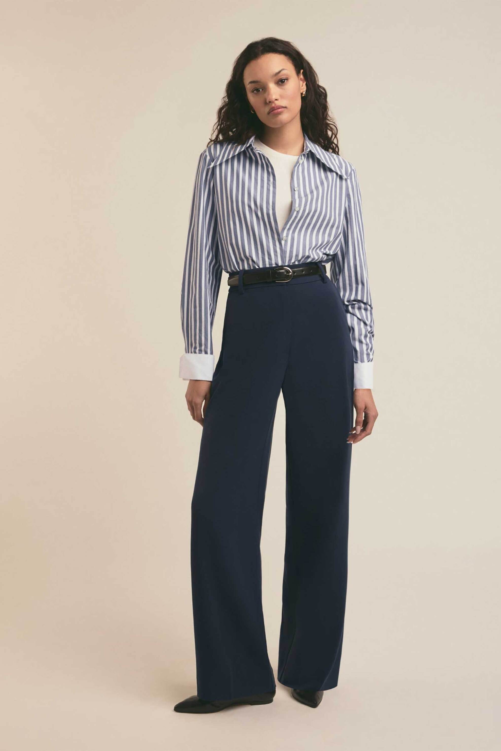 Γυναικείο παντελόνι. Ψηλόμεσο. Τσέπες στο πλάι. Relaxed fit. 63% polyester, 32% rayon, 5% elastane suiting blend Το μοντέλο έχει ύψος 5'9" και φοράει νούμερο 2.