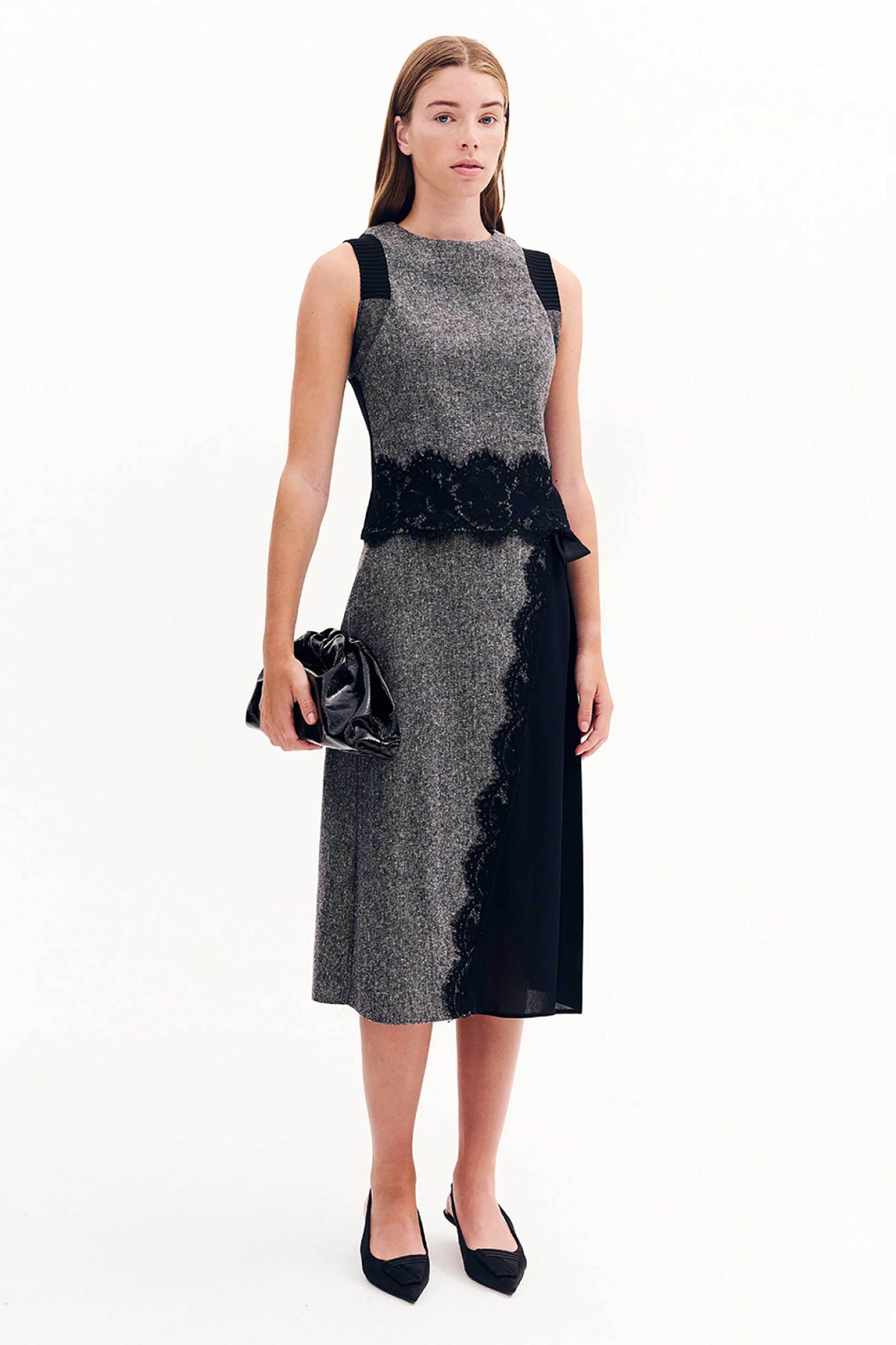 Γυναικεία midi φούστα. Συνδυασμός υφασμάτων. Ψηλόμεση. Δέσιμο με κορδέλα στο πλάι. Κλείσιμο με φερμουάρ. A-line. Προέλευση: EU. 40% polyester, 40% βαμβάκι, 20% pc FOREL Α.Ε.