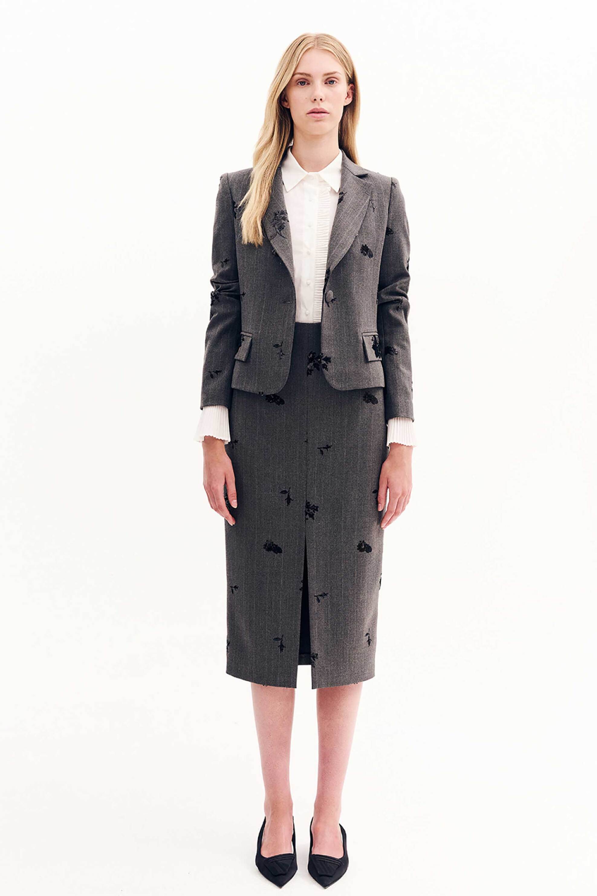 Γυναικεία midi φούστα. Λουλούδια από παγιέτα. Ψηλόμεση. Pencil. Άνοιγμα στο μπροστινό μέρος. Κλείσιμο στο πίσω μέρος με φερμουάρ. Προέλευση: EU. 75% polyester, 24% rayon, 1% spandex FOREL Α.Ε.