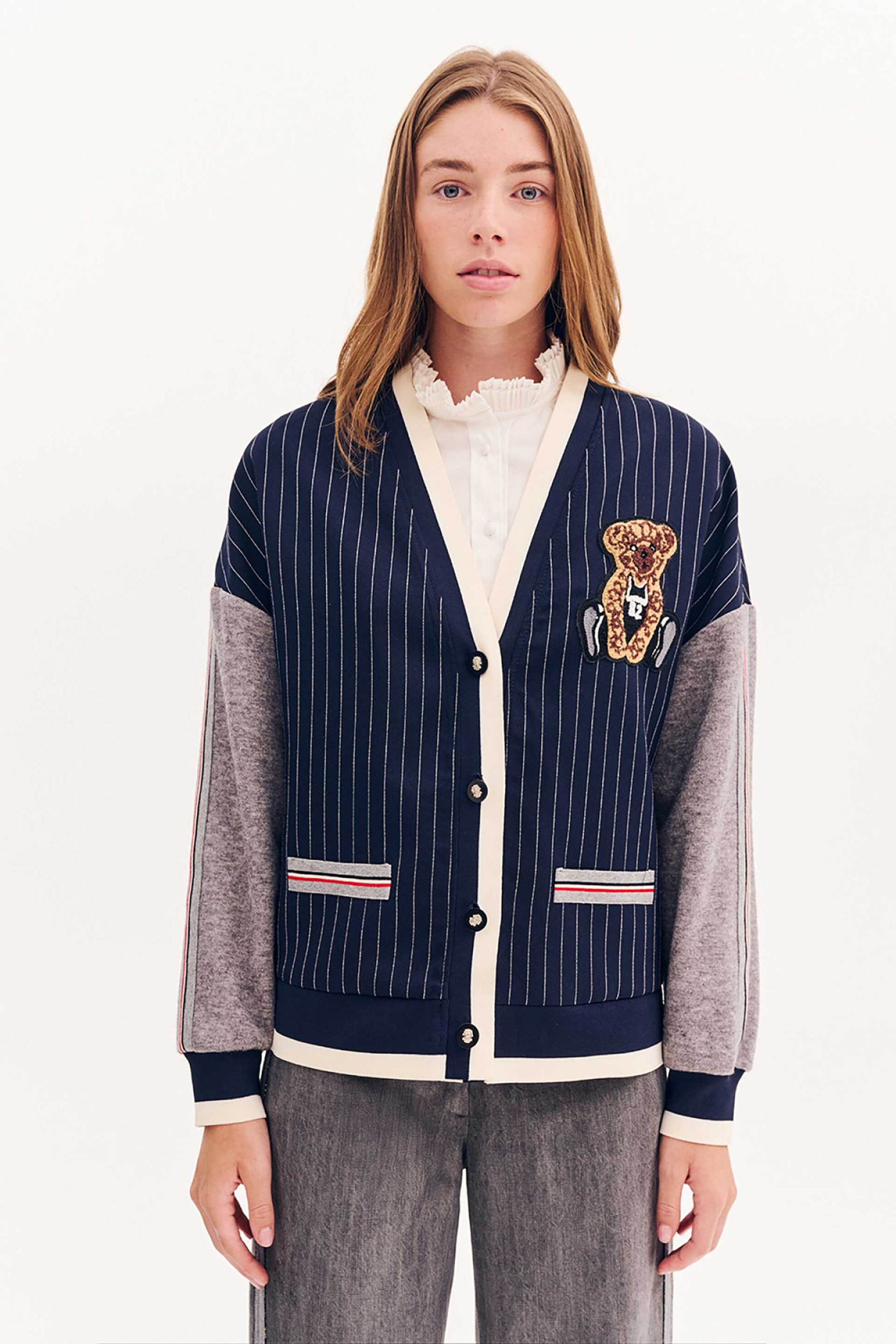 Γυναικεία ζακέτα πλεκτή. Ριγέ σχέδιο. V λαιμόκοψη. Μακρύ μανίκι. Κλείσιμο με κουμπιά. Προέλευση: EU. 76% polyamide, 24% βισκόζη FOREL Α.Ε.