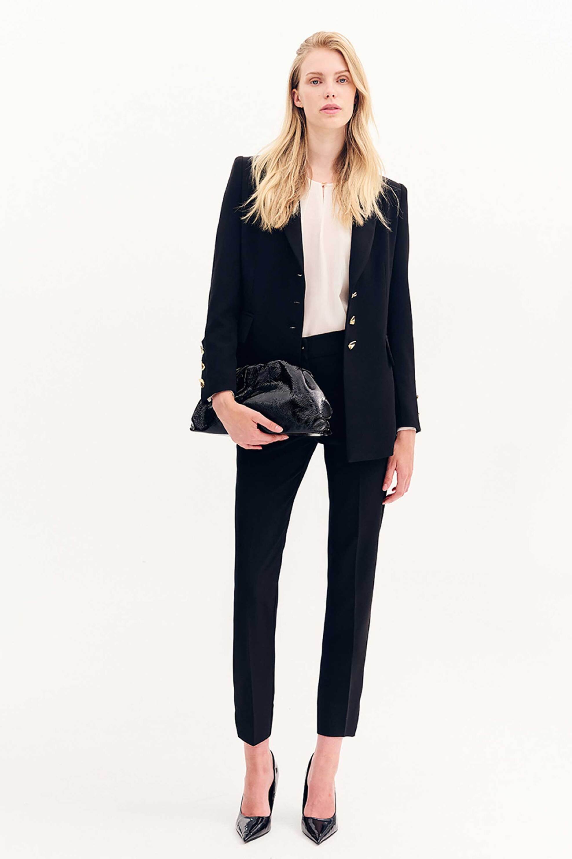 Γυναικείο παντελόνι. Μονόχρωμο. Χρυσά διακοσμητικά κουμπία. Κλείσιμο με φερμουάρ και κουμπί. Τσέπες στο πλάι. Προέλευση: EU. 95% polyester, 5% elastane FOREL Α.Ε.