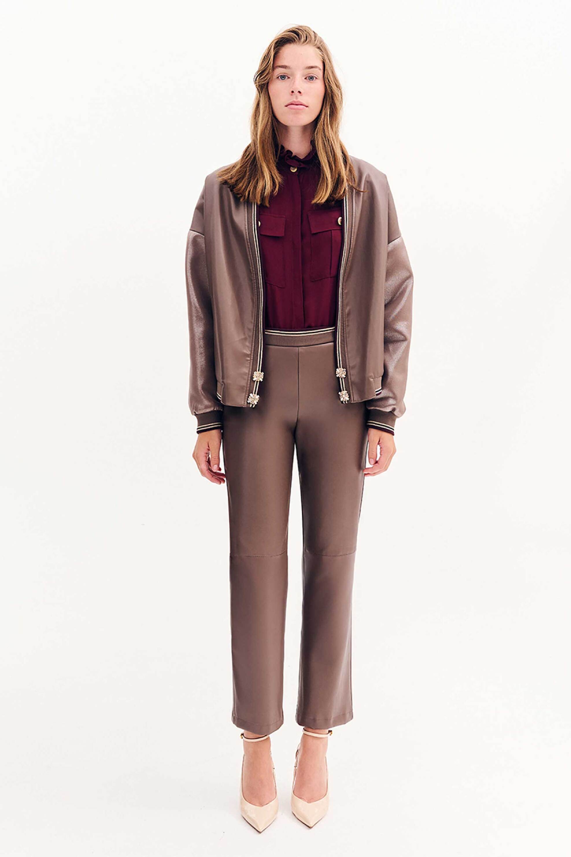 Γυναικείο παντελόνι. Μονόχρωμο. Faux δέρμα. Αγκράφες στο μπροστινό μέρος. Κλείσιμο με φερμουάρ. Τσέπες στο πλάι. Προέλευση: EU. 52% polyurethane, 45% pvc, 3% elastane FOREL Α.Ε.