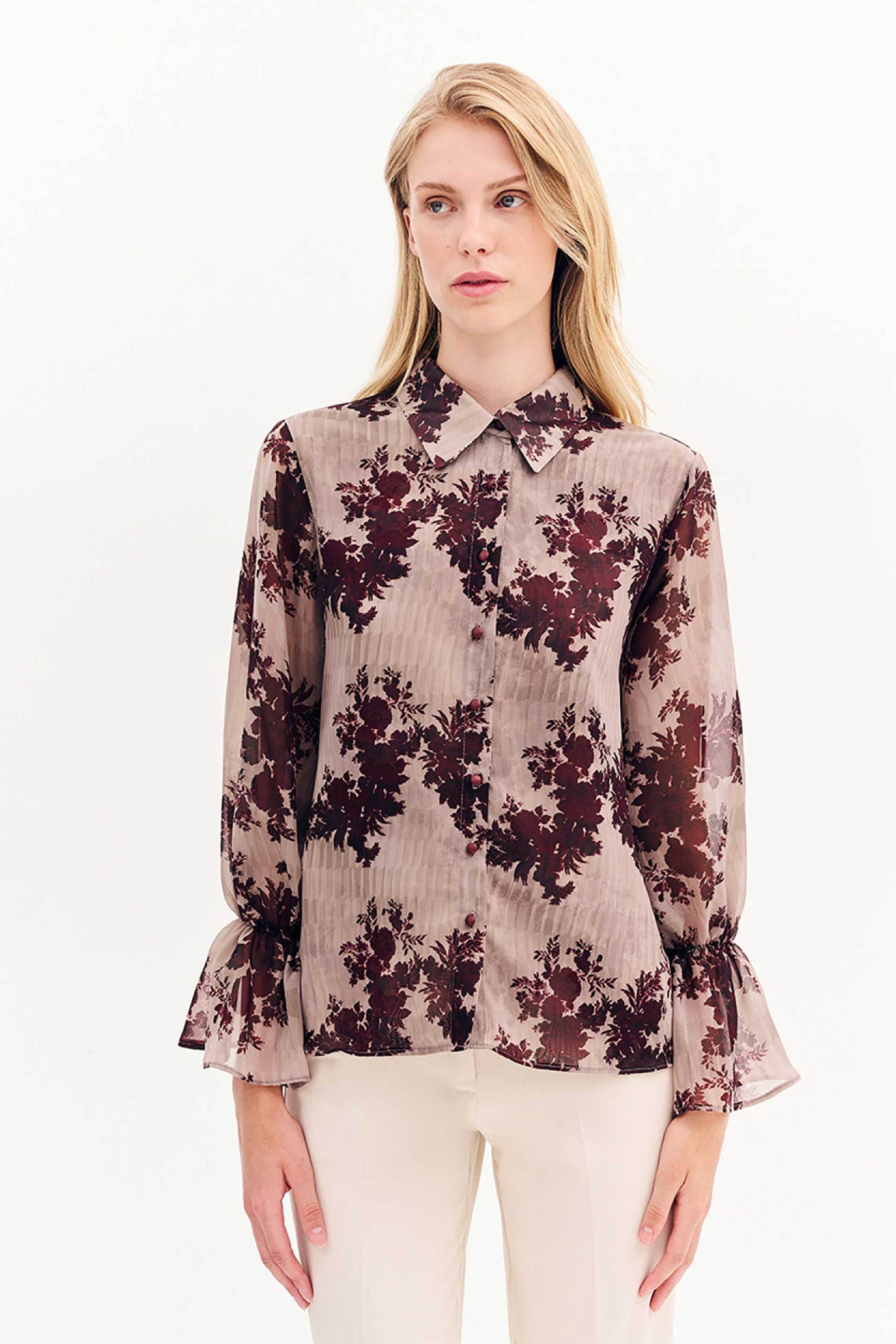 Γυναικείο πουκάμισο. Floral print. Κλασικός γιακάς. Μακρύ μανίκι. Λάστιχο στα τελειώματα. Κλείσιμο μπροστά με κουμπιά. Προέλευση: EU. 100% polyester FOREL Α.Ε.