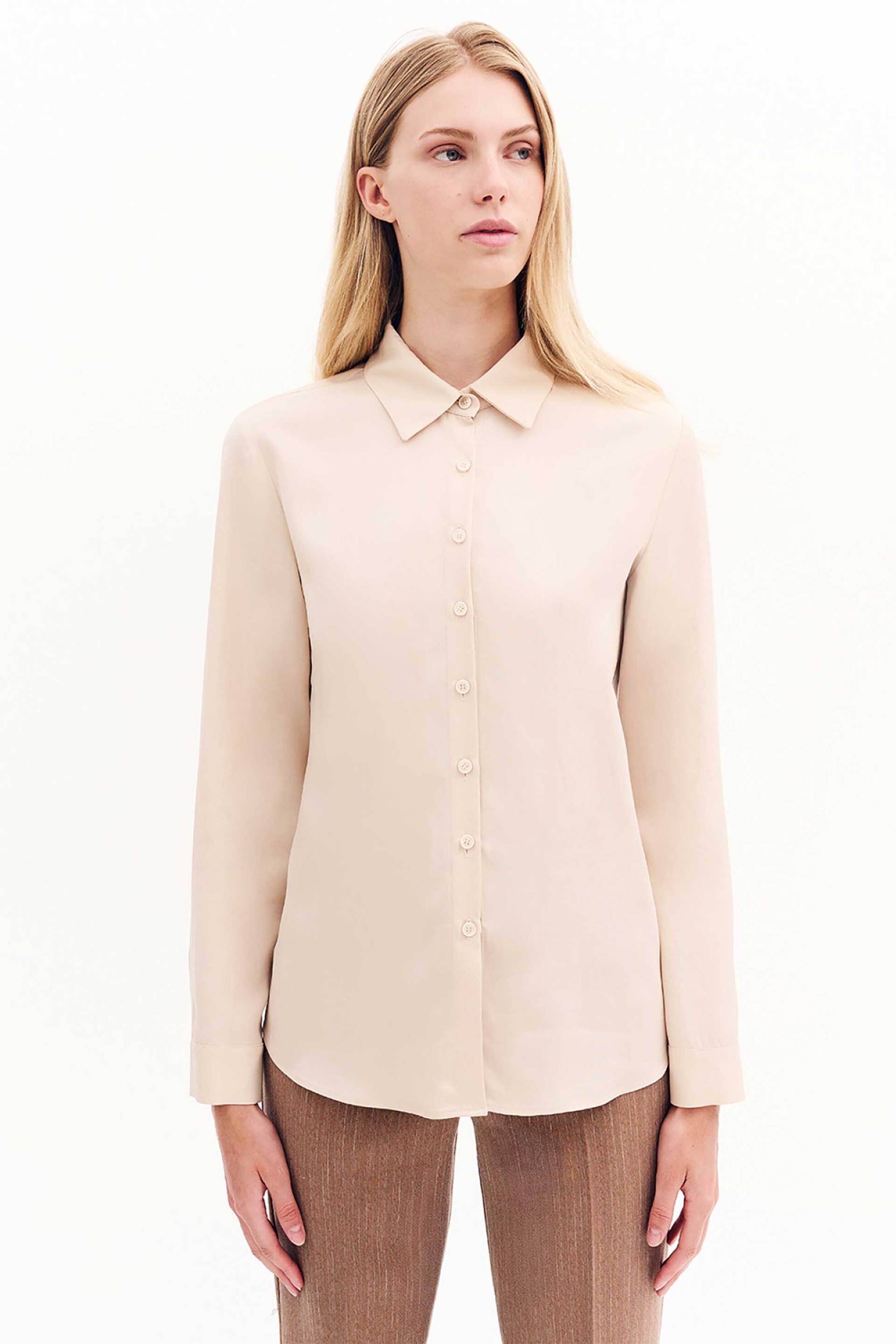 Γυναικείο πουκάμισο. Μονόχρωμο. Κλασικός γιακάς. Μακρύ μανίκι. Κλείσιμο μπροστά με κουμπιά. Προέλευση: EU. 100% lyocell FOREL Α.Ε.