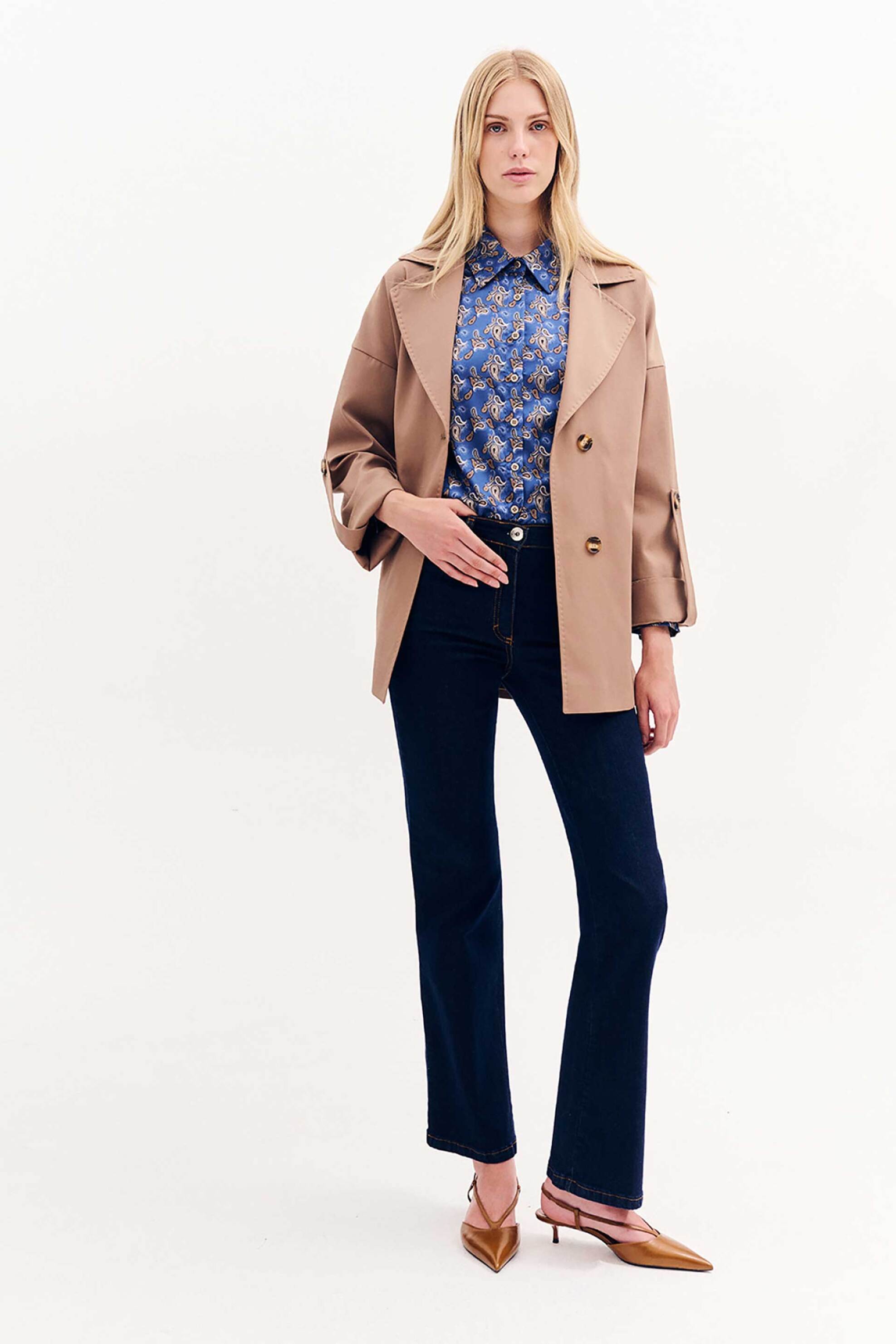 Γυναικείο τζιν παντελόνι. Μονόχρωμο. Καμπάνα. Πεντάτσεπο. Κλείσιμο με φερμουάρ και κουμπί. Προέλευση: EU. 86% βαμβάκι, 13% polyester, 1% elastane FOREL Α.Ε.