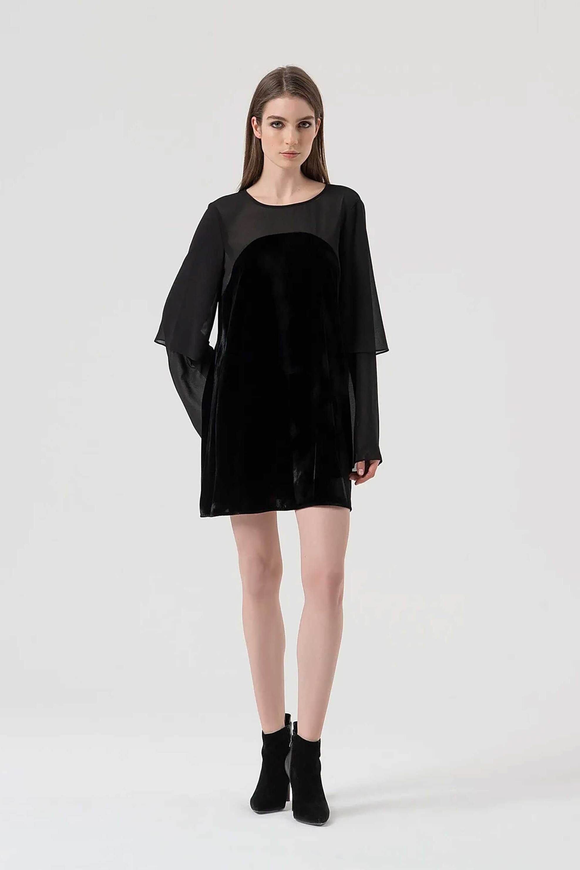 Γυναικείο mini φόρεμα. Μονόχρωμο. Διάτρητο σχέδιο. Μακρύ μανίκι με βολάν. Α γραμμή. Προέλευση: CΝ. 80% polyester, 20% μετάξι Το μοντέλο έχει ύψος 175 cm και φοράει νούμερο S. PFCMNA SPA