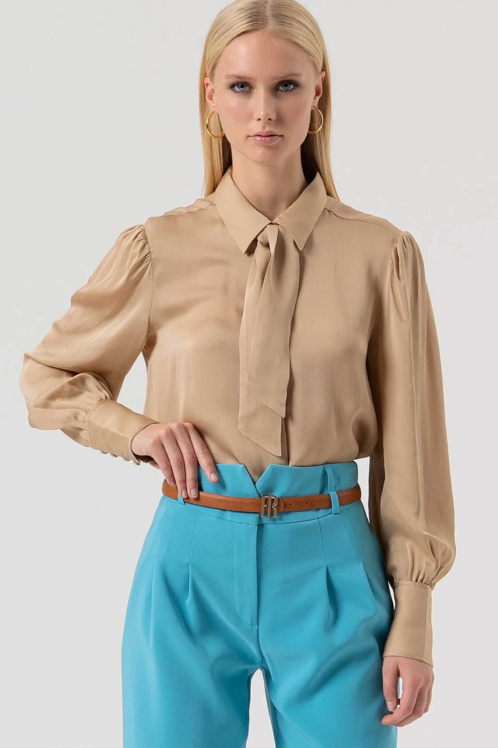 Γυναικείο πουκάμισο. Μονόχρωμο. Κλασικός γιακάς. Κρόσσια. Μακρύ μανίκι. Regular fit. Προέλευση: CN. 52% βισκόζη, 48% μετάξι Το μοντέλο έχει ύψος 175 cm και φοράει νούμερο S. PFCMNA SPA