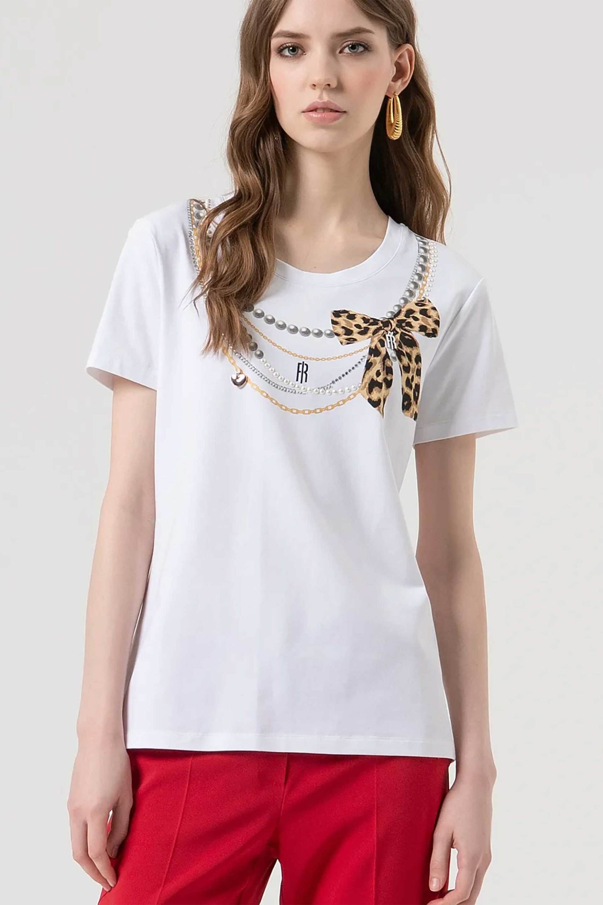 Γυναικείο T-shirt. Μονόχρωμo. Στρογγυλή λαιμόκοψη. Print στο μπροστινό μέρος. Κοντό μανίκι. Regular fit. Προέλευση: CN. 95% βαμβάκι, 5% elastane Το μοντέλο έχει ύψος 175 cm και φοράει νούμερο S. PFCMNA SPA