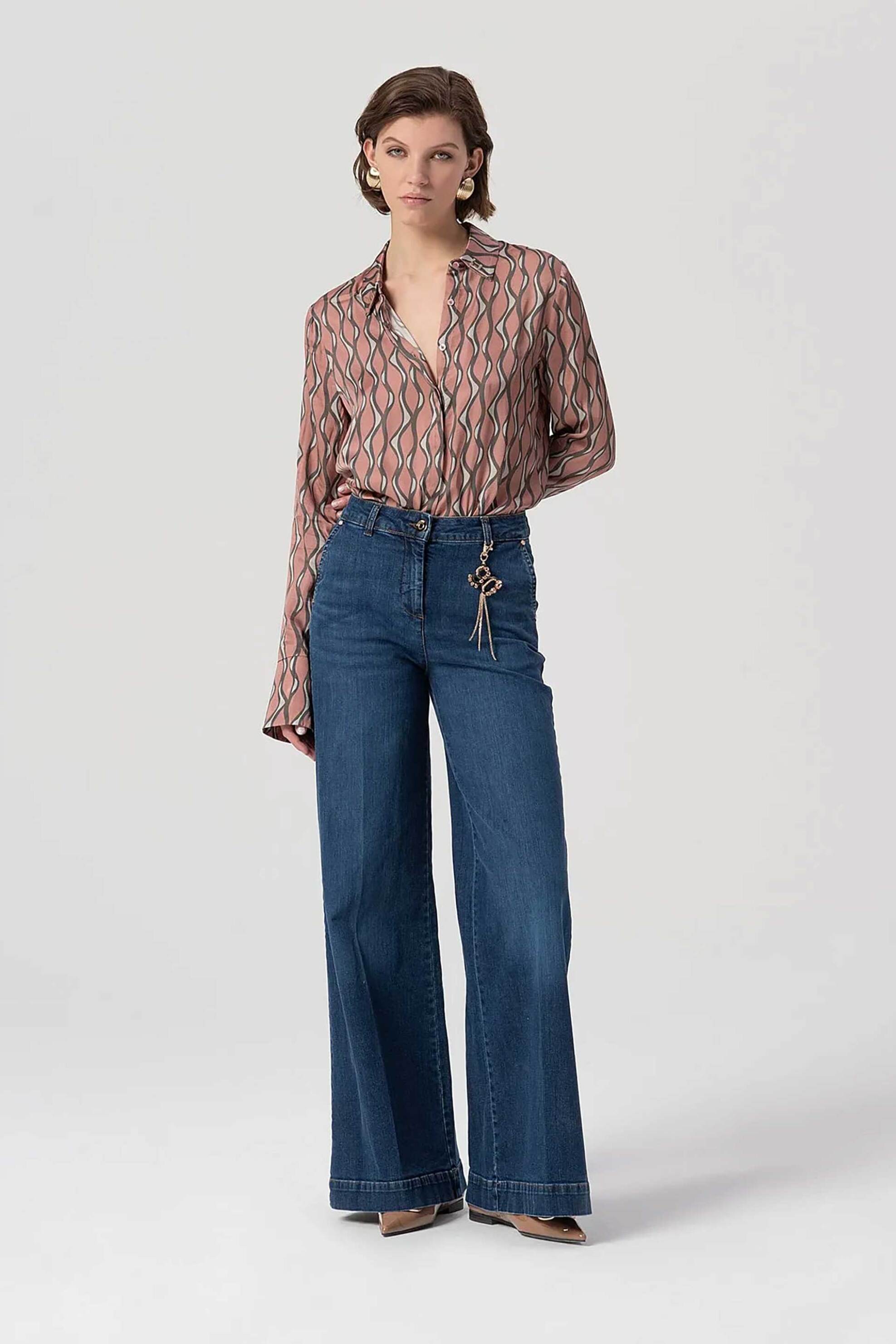 Γυναικείο τζιν παντελόνι. Ψηλόμεσο. Πλαϊνές τσέπες. Wide Leg. Προέλευση: IT. 99% βαμβάκι, 1% elastane Το μοντέλο έχει ύψος 175 cm και φοράει νούμερο S. PFCMNA SPA