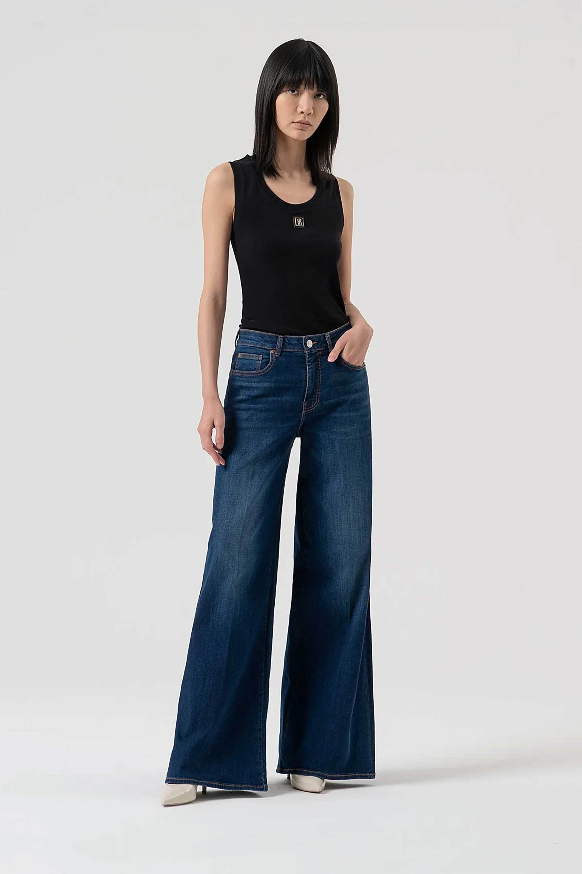 Γυναικείο τζιν παντελόνι. Ψηλόμεσο. Πεντάτσεπο. Wide Leg. Προέλευση: PK. 98% βαμβάκι, 2% elastane Το μοντέλο έχει ύψος 175 cm και φοράει νούμερο S. PFCMNA SPA