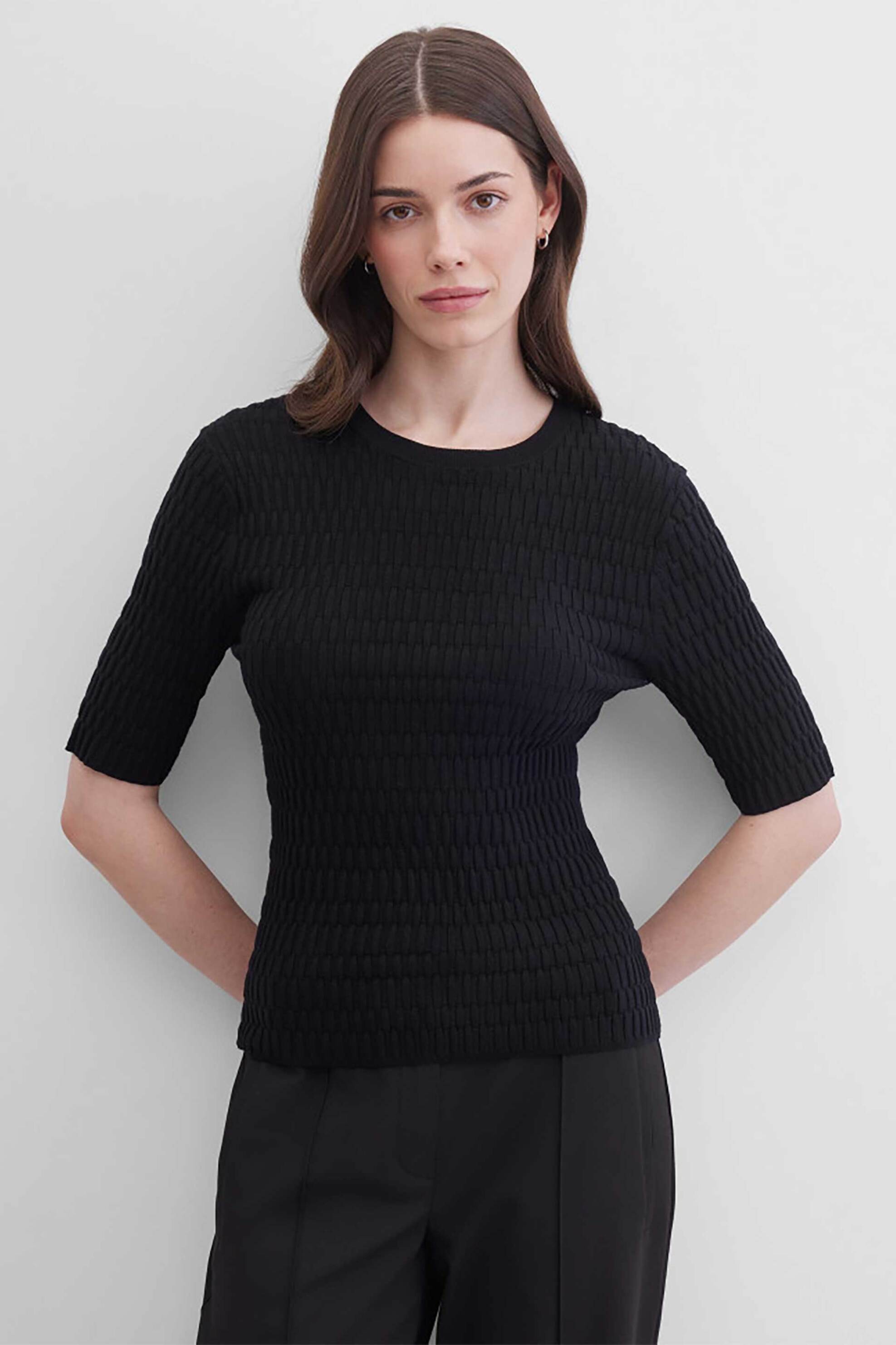 Γυναικεία πλεκτή μπλούζα. Μονόχρωμη textured. Στρογγυλή λαιμόκοψη. Μανίκι 3/4. Straight cut. Προέλευση: CN. 72% βισκόζη, 28% polyester LIFE-STYLE FASHION GMBH