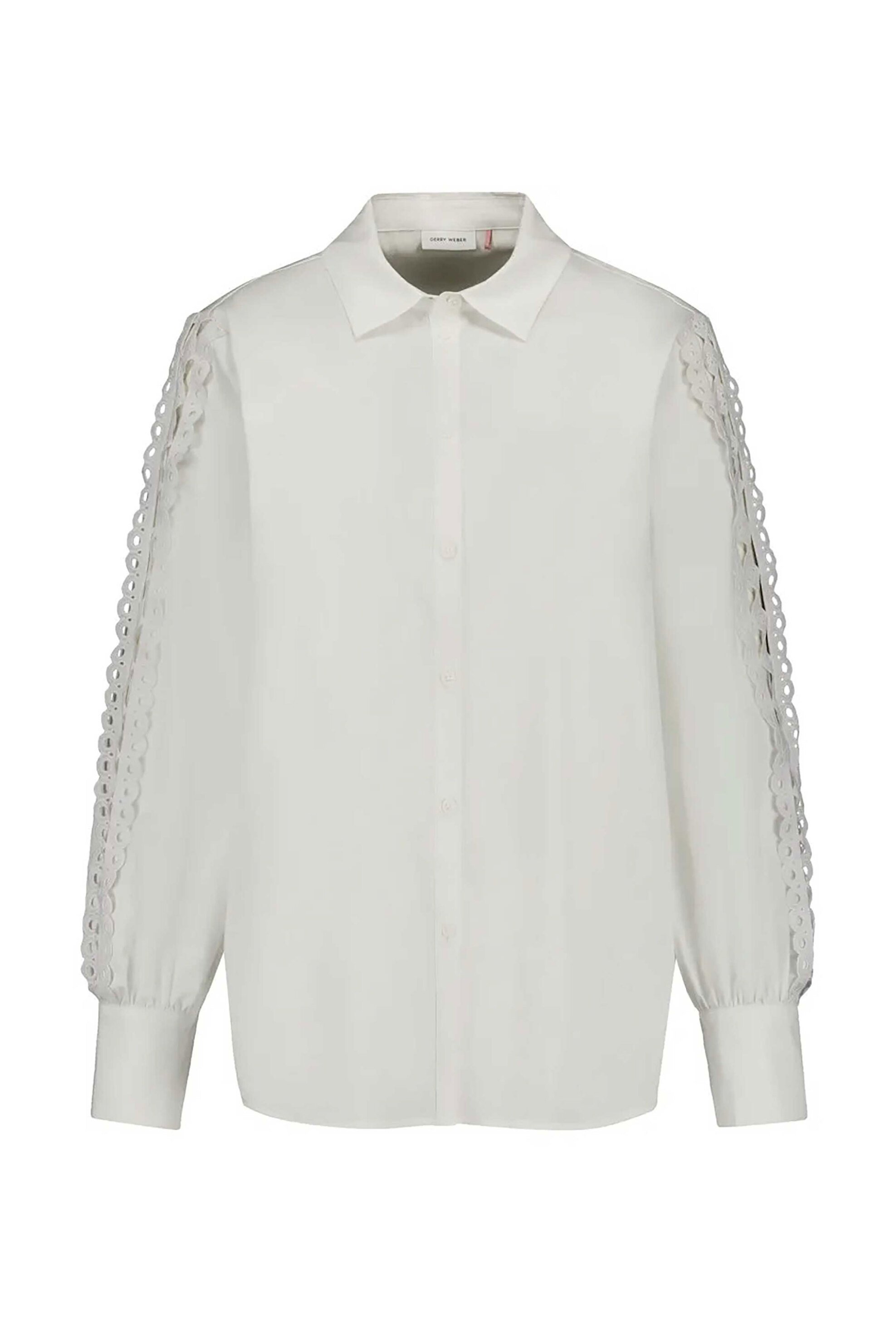 Γυναικείο πουκάμισο. Μονόχρωμο. Κλείσιμο με κουμπιά. Cut out λεπτομέρειες απο δαντέλα στα μανίκια και στο πίσω μέρος. 100% βαμβάκι