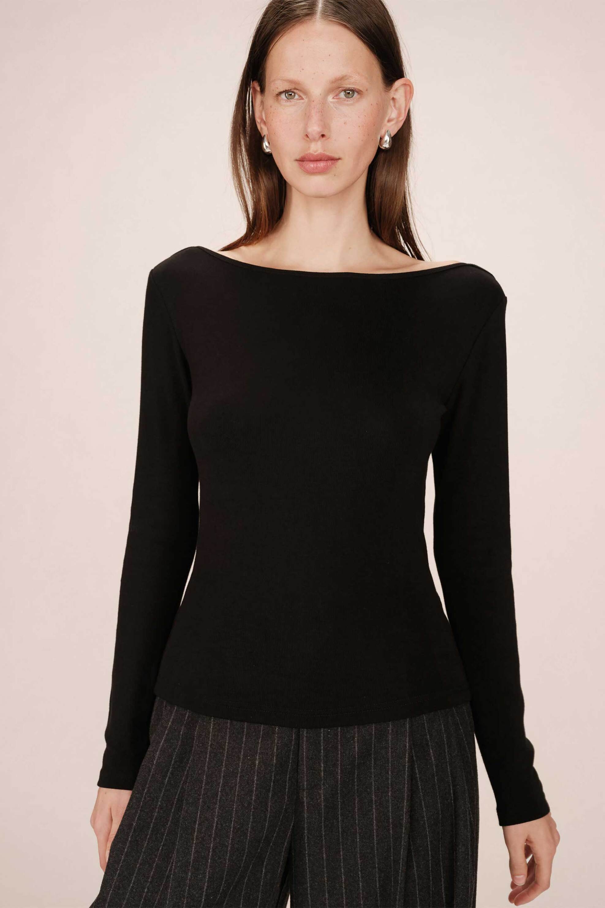 Γυναικεία μπλούζα. Boat λαιμόκοψη. Μακρύ μανίκι. Μονόχρωμη. Προέλευση: CN. 65% βισκόζη, 30% polyester, 5% elastane Το μοντέλο έχει ύψος περίπου 172 cm και φοράει μέγεθος S. ΑΙΣΑΚΟΣ Α.Ε.