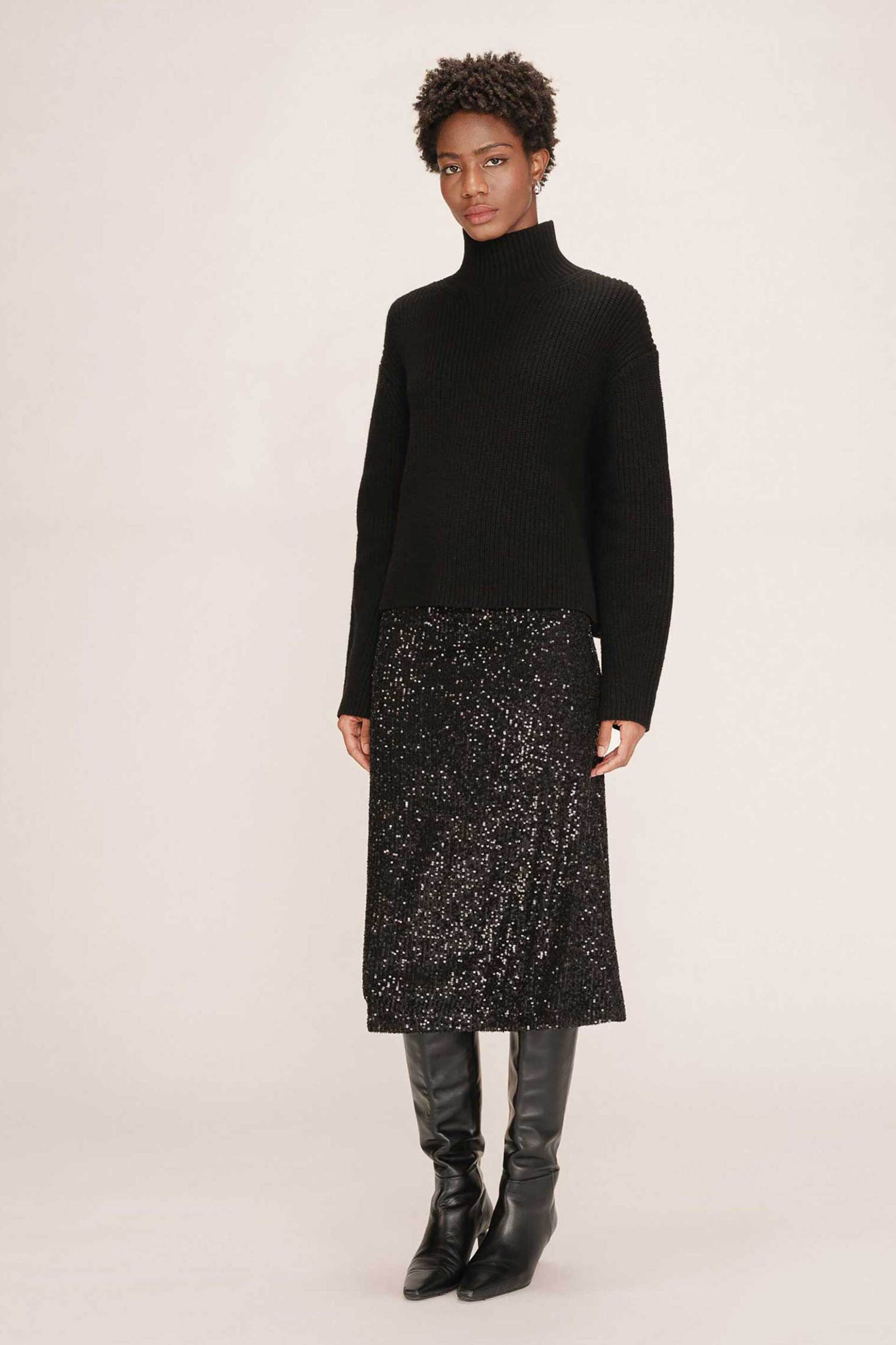 Γυναικεία pencil φούστα. All-over παγιέτα. Άνοιγμα στο πίσω μέρος. Ψηλόμεση. A-line cut. Προέλευση: CN. 95% polyester, 5% elastane Το μοντέλο έχει ύψος περίπου 172 cm και φοράει μέγεθος S. ΑΙΣΑΚΟΣ Α.Ε.