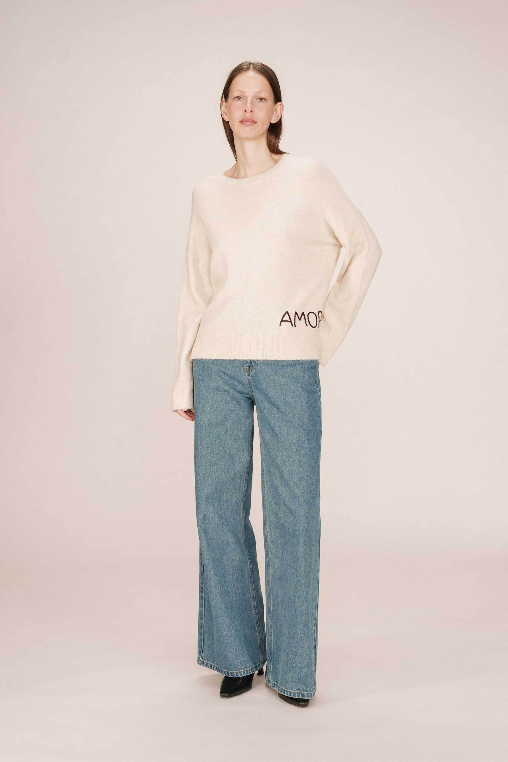 Γυναικεία πλεκτή μπλούζα. Στρογγυλή λαιμόκοψη. Κέντημα με lettering. Mακρύ μανίκι. Προέλευση: CN. 68% acrylic, 12% polyester, 11% nylon, 6% μαλλί, 3% elastane Το μοντέλο έχει ύψος περίπου 172 cm και φοράει μέγεθος S. ΑΙΣΑΚΟΣ Α.Ε.