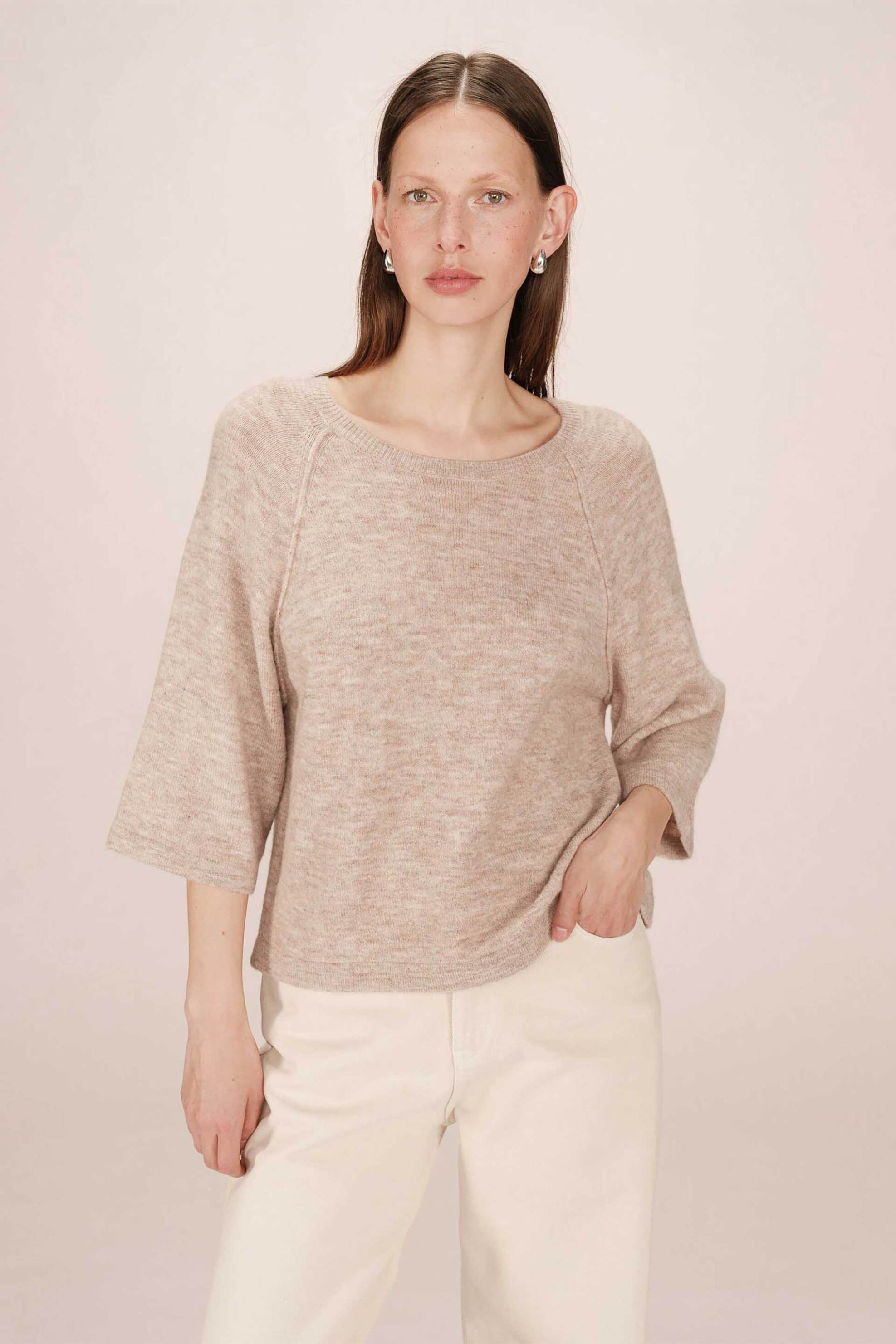 Γυναικεία πλεκτή μπλούζα. Στρογγυλή λαιμόκοψη. Μονόχρωμη. Mανίκι 3/4. Προέλευση: CN. 53% acrylic, 28% nylon, 10% μαλλί, 6% mohair, 3% elastane Το μοντέλο έχει ύψος περίπου 172 cm και φοράει μέγεθος S. ΑΙΣΑΚΟΣ Α.Ε.