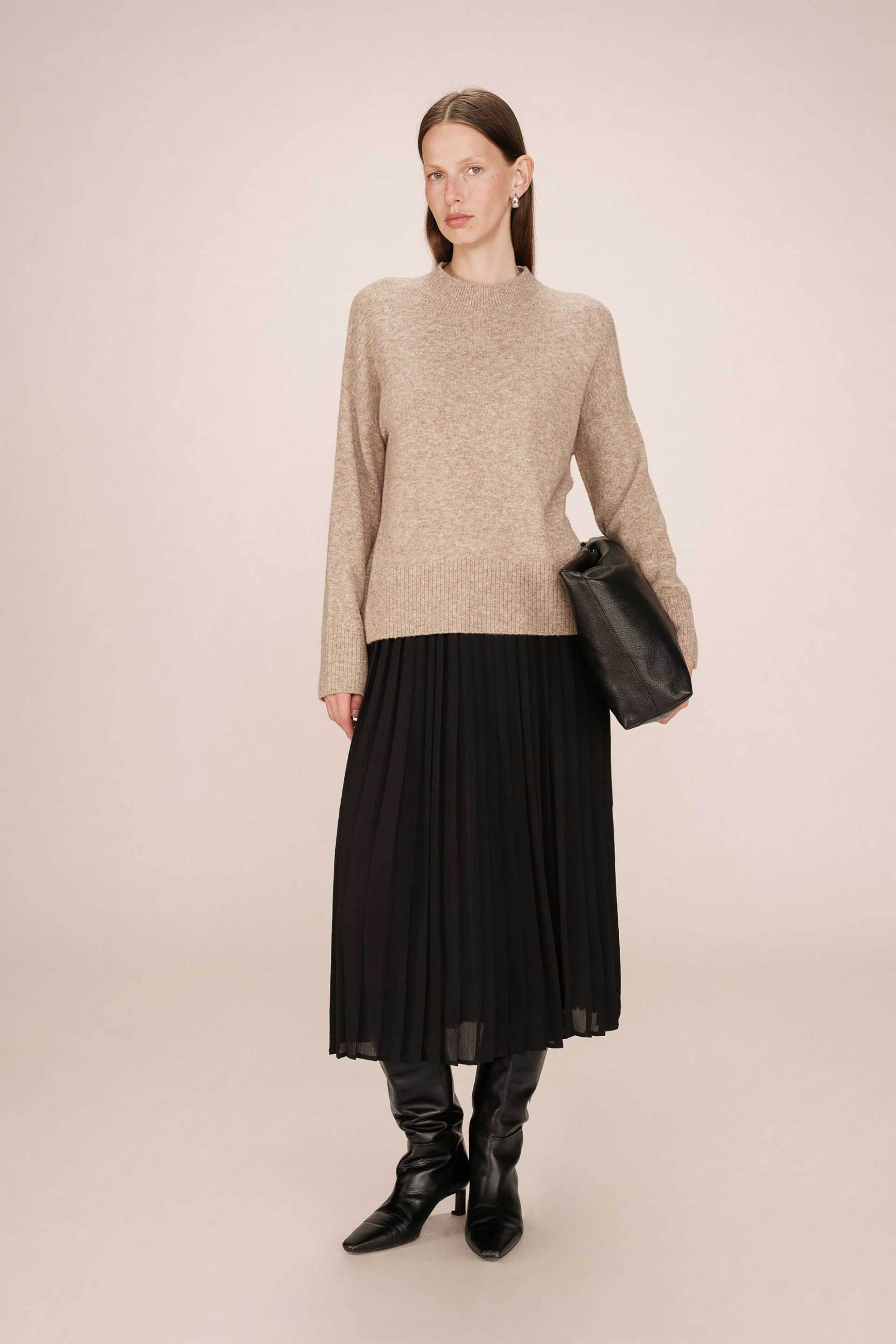 Γυναικεία πλεκτή μπλούζα. Στρογγυλή λαιμόκοψη. Μονόχρωμη. Mακρύ μανίκι. Προέλευση: CN. 68% acrylic, 12% polyester, 11% nylon, 6% μαλλί, 3% elastane Το μοντέλο έχει ύψος περίπου 172 cm και φοράει μέγεθος S. ΑΙΣΑΚΟΣ Α.Ε.