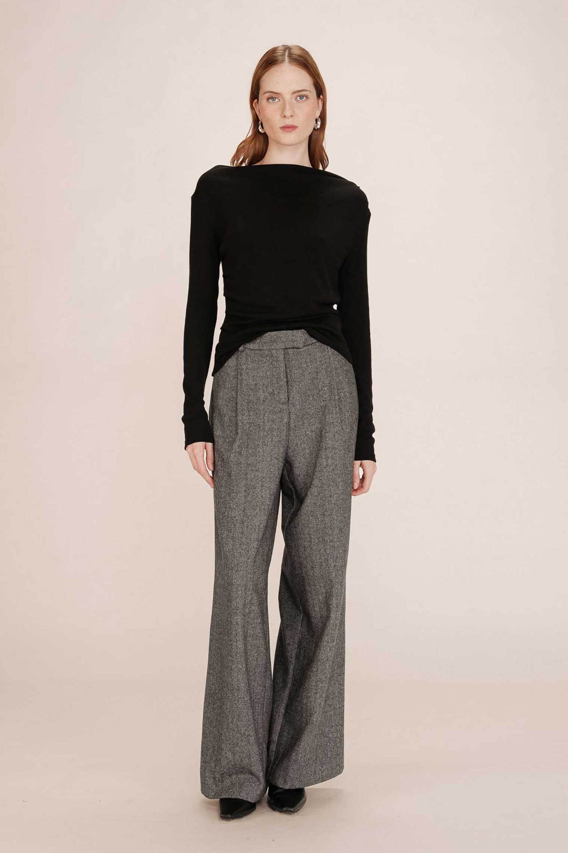 Γυναικείο παντελόνι. Κλείσιμο με φερμουάρ και γάντζο. Ψηλόμεσο. Τσέπες. Σχέδιο με πιέτες. Straight leg. Προέλευση: CN. 100% βαμβάκι Το μοντέλο έχει ύψος περίπου 176 cm και φοράει μέγεθος S. ΑΙΣΑΚΟΣ Α.Ε.