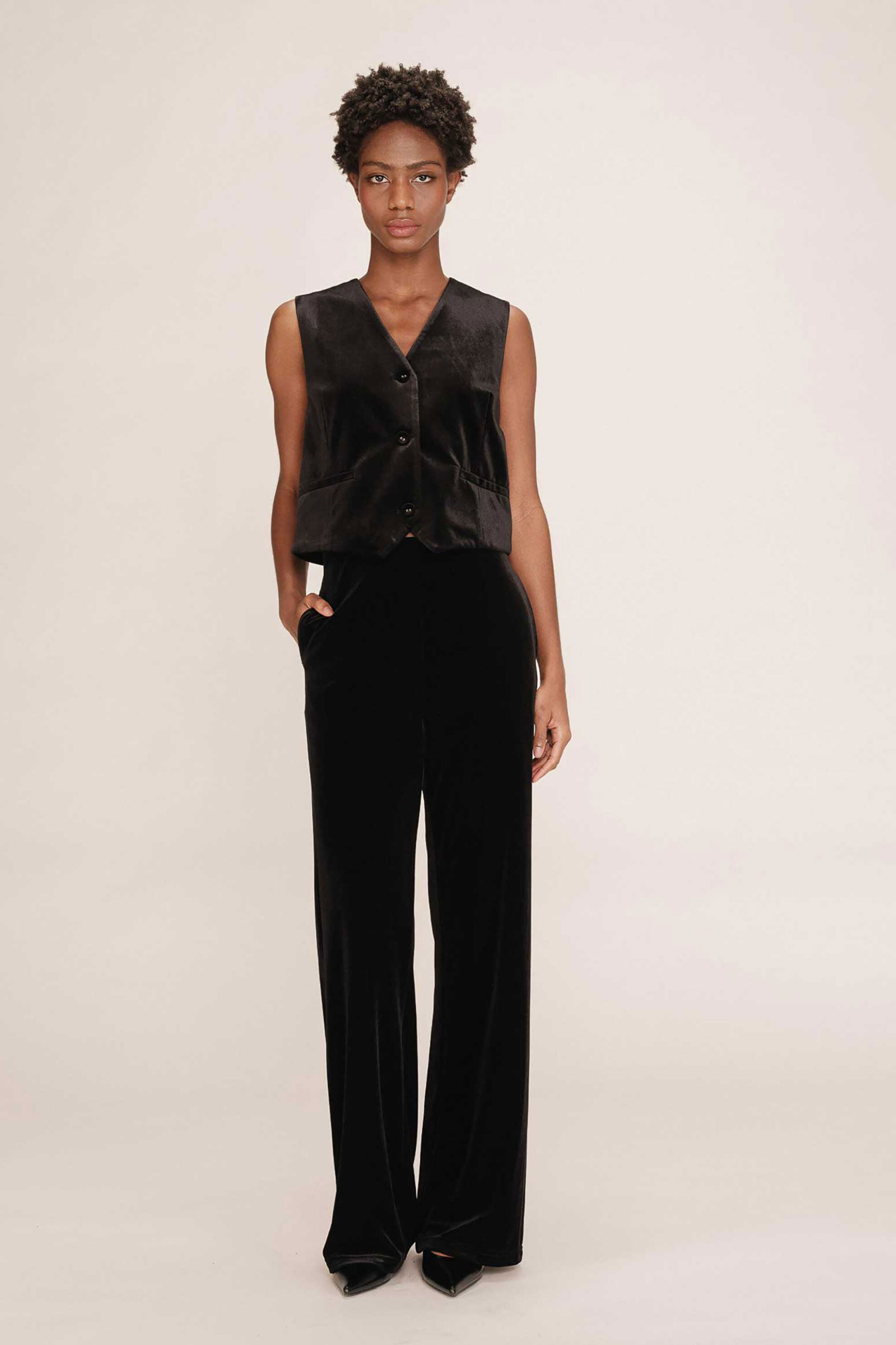 Γυναικείο παντελόνι velvet. Eλαστική μέση. Ψηλόμεσο. Τσέπε στο πλάι. Straight Leg. Προέλευση: CN. 95% polyester, 5% elastane Το μοντέλο έχει ύψος περίπου 176 cm και φοράει μέγεθος S. ΑΙΣΑΚΟΣ Α.Ε.