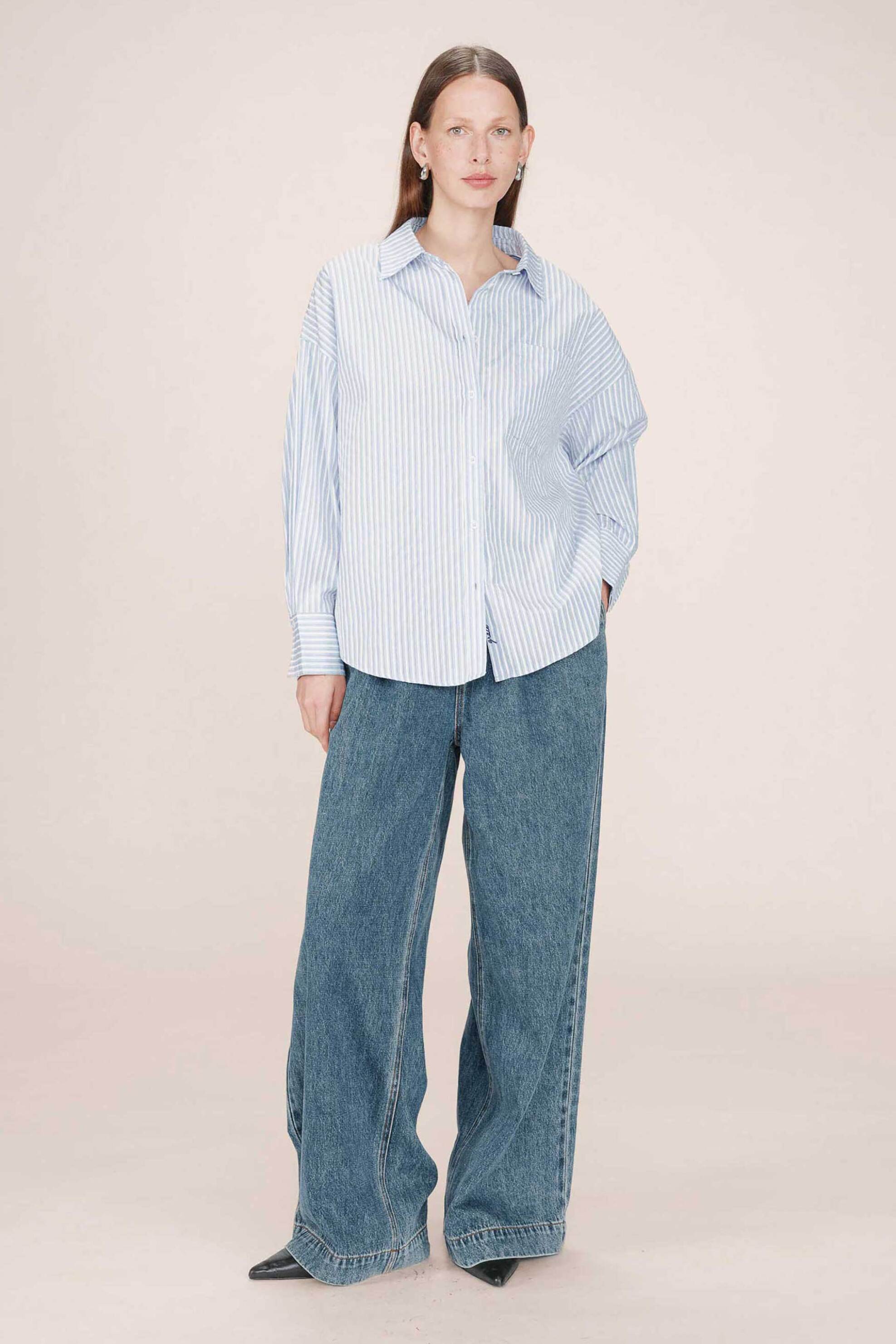 Γυναικείο πουκάμισο. Κλείσιμο με κουμπιά. Μακρύ μανίκι. Τσέπη στο στήθος. Ριγέ σχέδιο. Προέλευση: CN. 100% βαμβάκι Το μοντέλο έχει ύψος 172 cm και φοράει μέγεθος S. ΑΙΣΑΚΟΣ Α.Ε.