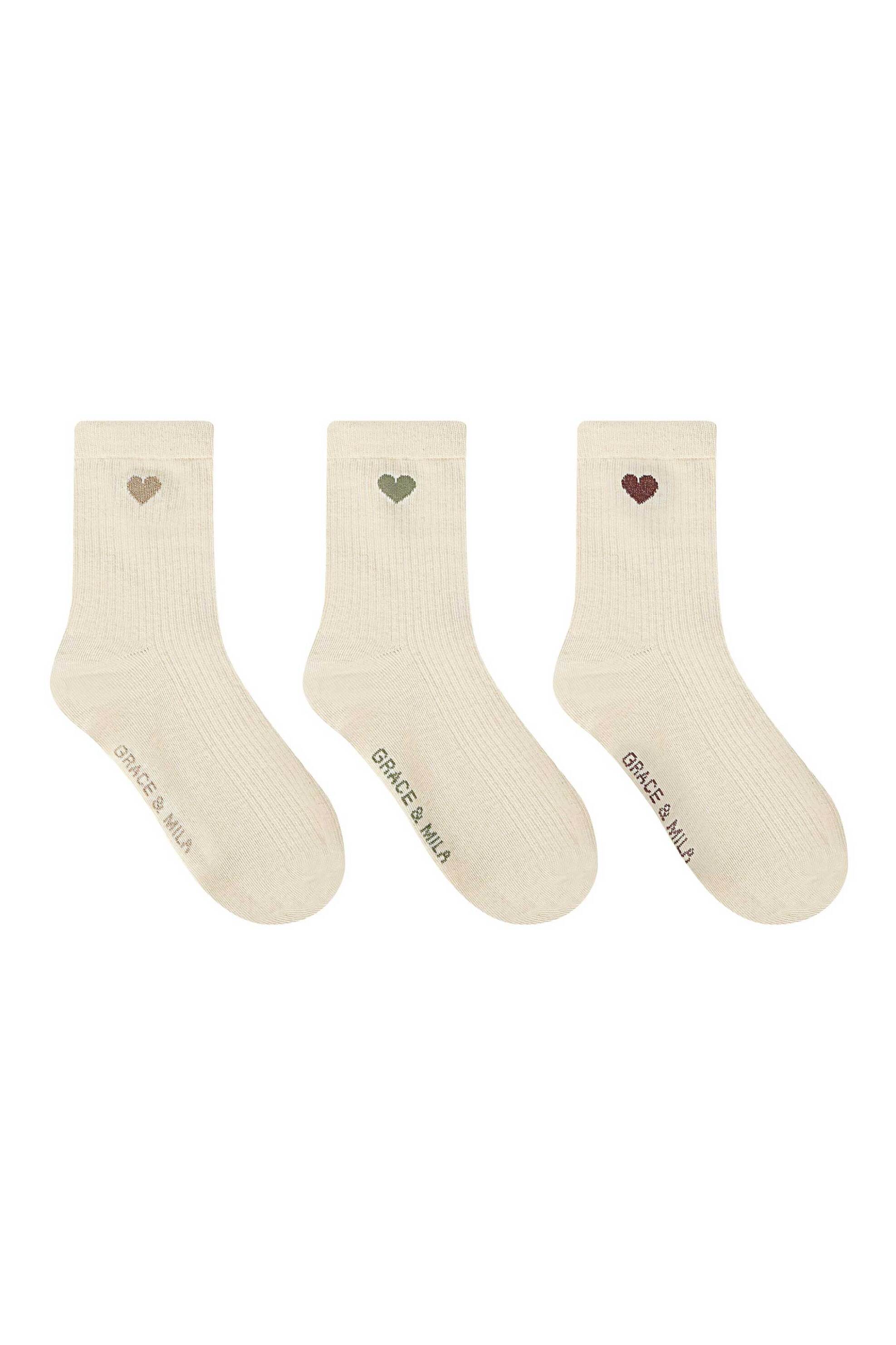 Σετ γυναικείες μακριές κάλτσες. 3 ζευγάρια. Ribbed ύφανση. Σχέδιο με καρδιά. Προέλευση: CN. 74% βαμβάκι, 23% polyester, 2% elastane, 1% lurex ΑΙΣΑΚΟΣ Α.Ε.