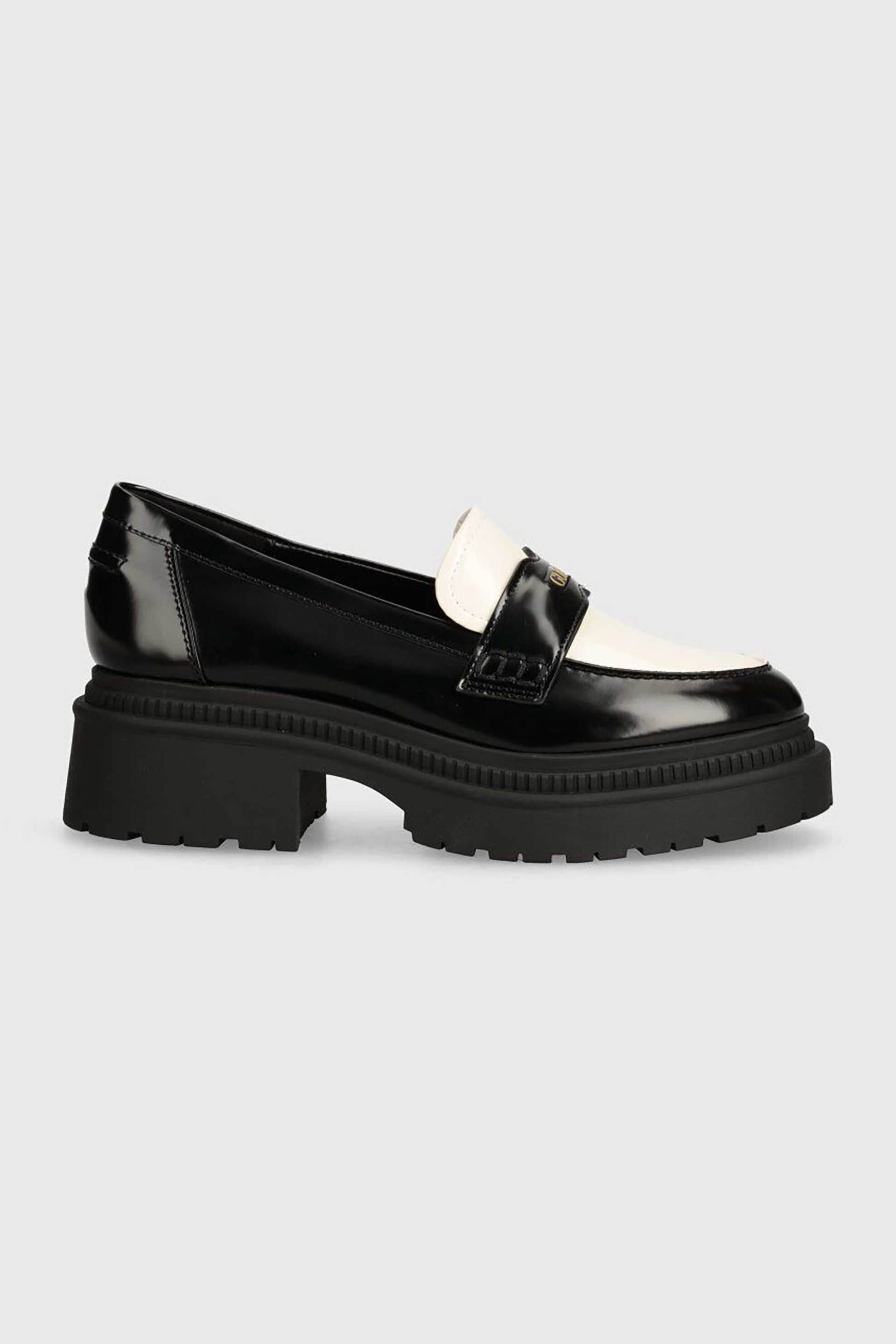Γυναικεία μοκασίνια. Slip on. Contrast λεπτομέρεια στο πάνω μέρος. Λογότυπο στη γλώσσα του παπουτσιού. Ύψος τακουνιού: 6 cm. Συνθετικό υλικό