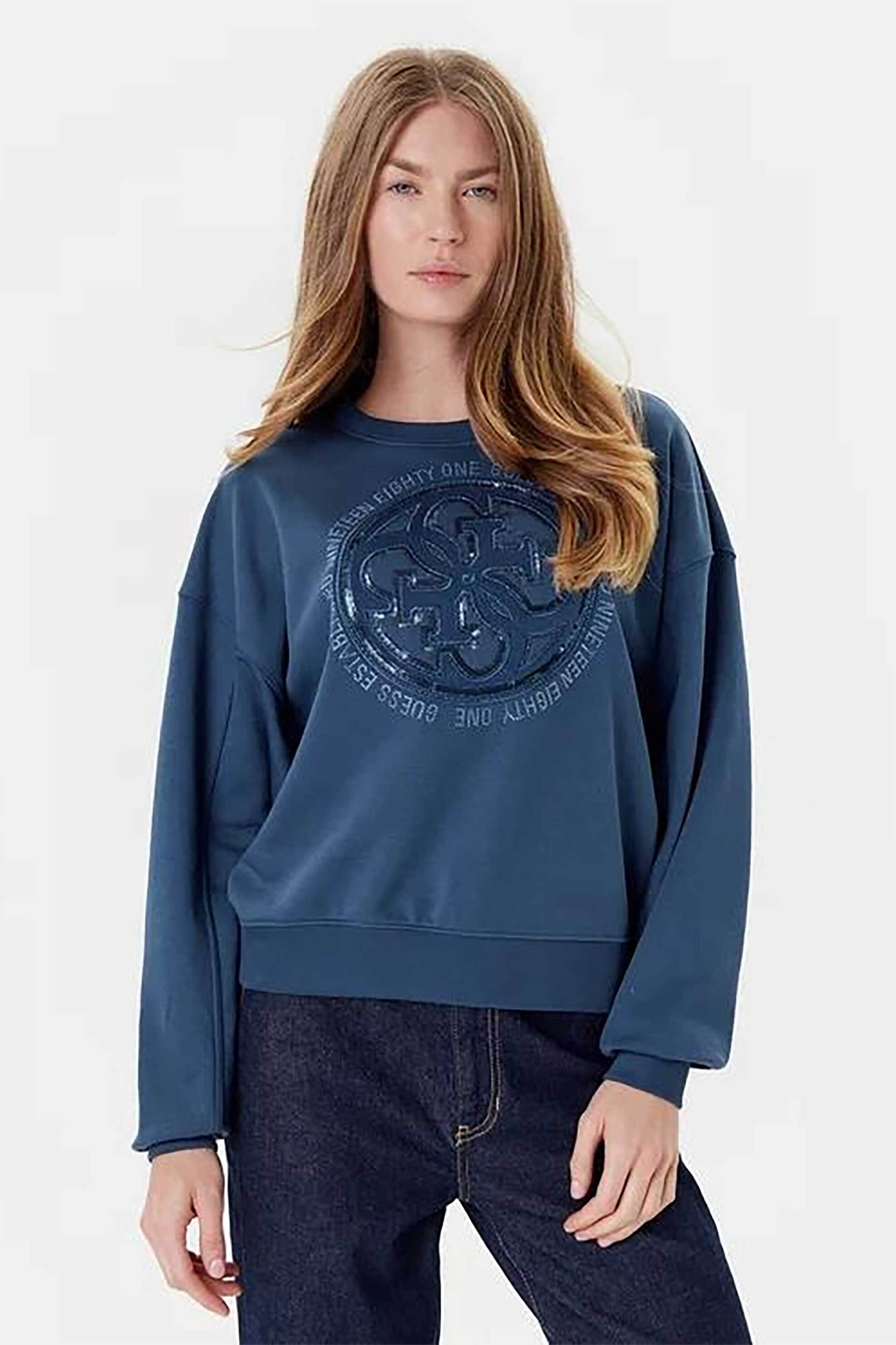 Γυναικεία μπλούζα φούτερ. Logo print στο στήθος. Στρογγυλή λαιμόκοψη. Ribbed τελειώματα. Προέλευση: Ινδία. 60% βαμβάκι, 40% polyester SHOP & TRADE AEBE