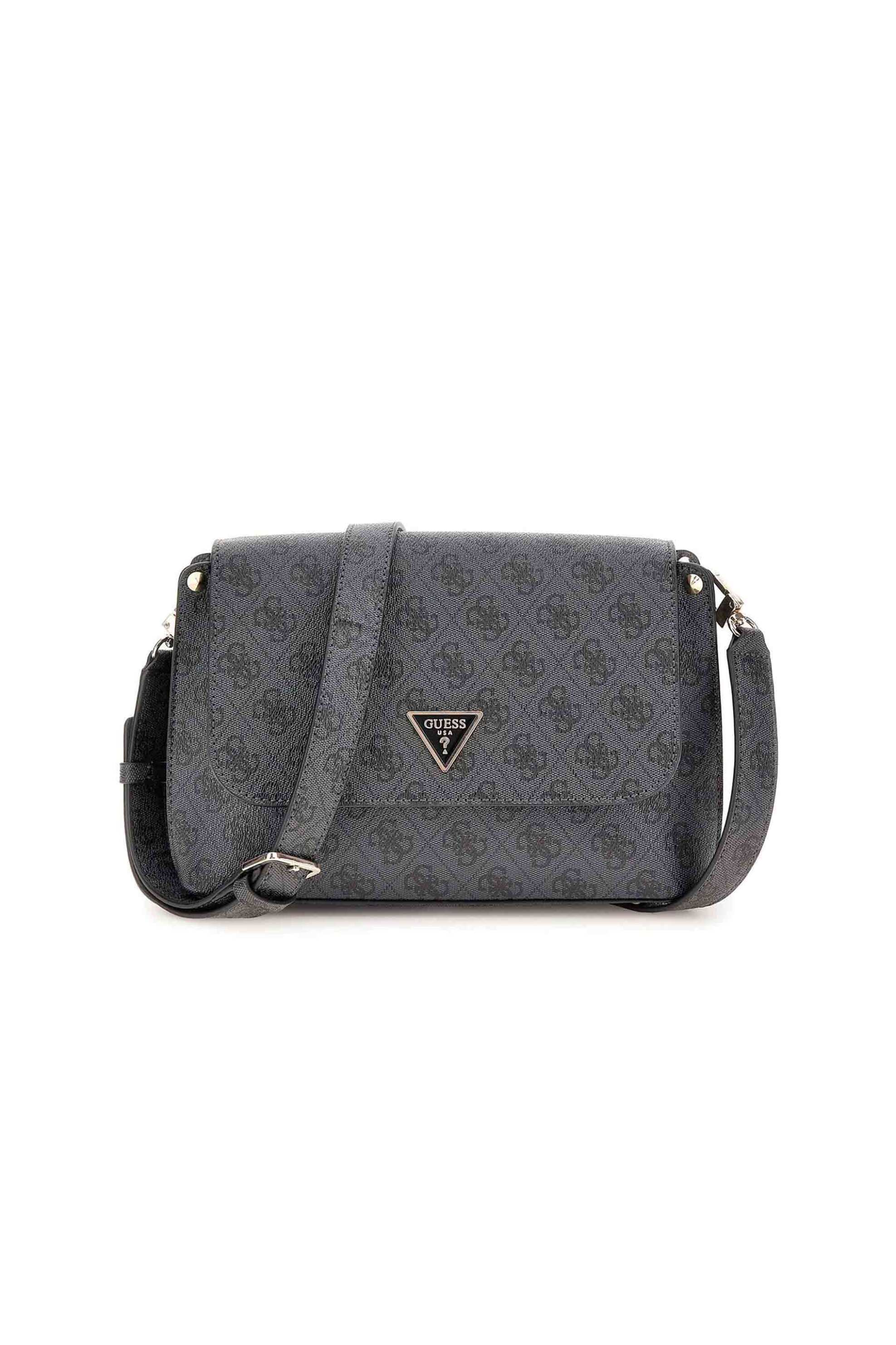 Γυναικεία τσάντα crossbody. All-over logo print. Flap κλείσιμο με μαγνητικό κούμπωμα. Μεταλλικά στοιχεία σε χρυσό χρώμα. Διαστάσεις: 27 x 19 x 8 cm. Προέλευση: Myanmar. 100% polyurethane SHOP & TRADE AEBE