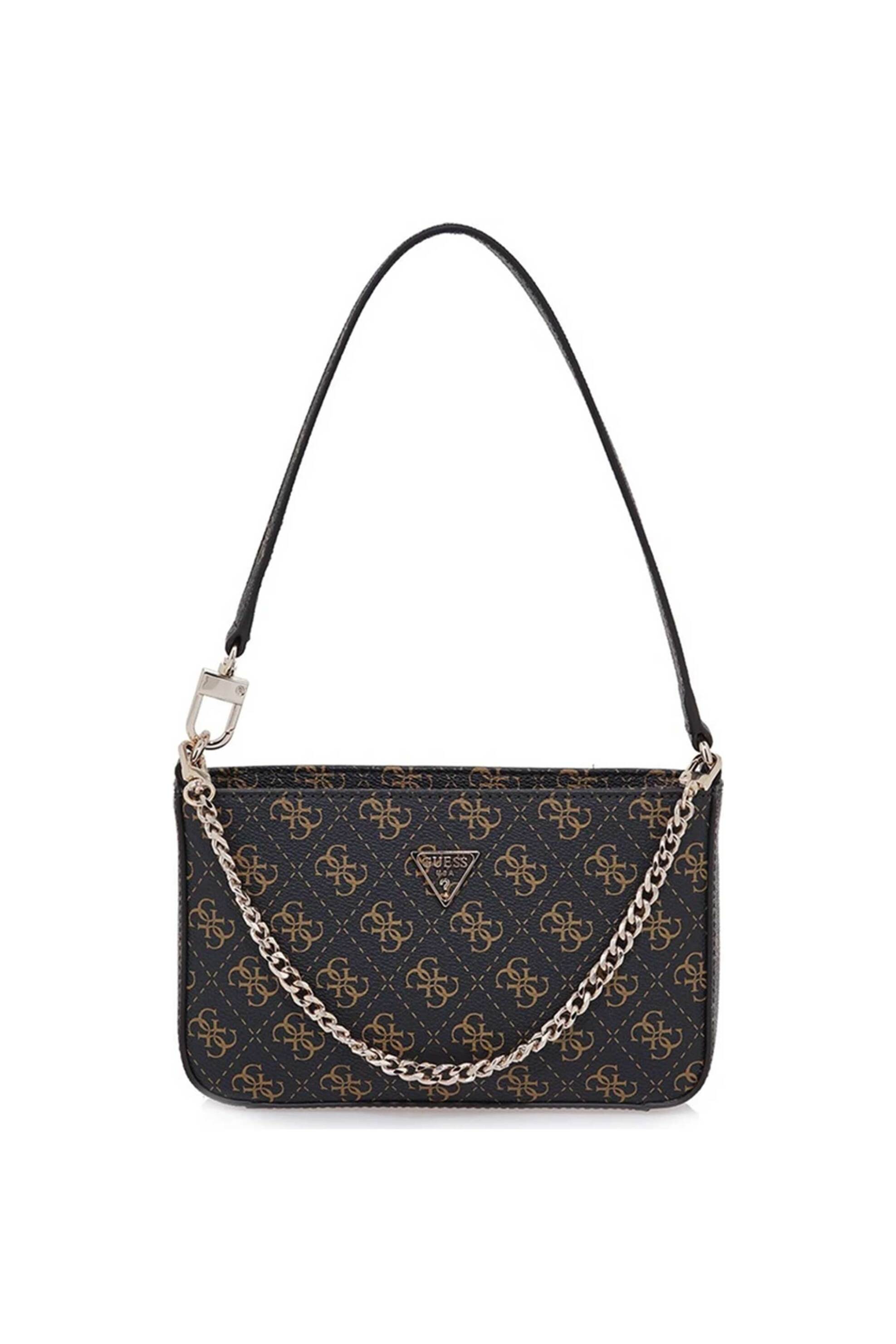 Γυναικεία τσάντα ώμου. All-over logo print. Μεταλλικό λογότυπο. Θήκη στο πίσω μέρος. Κλείσιμο με φερμουάρ. Διαστάσεις: 22 x 13 x 4 cm. Προέλευση: Κίνα. 100% polyurethane SHOP & TRADE AEBE