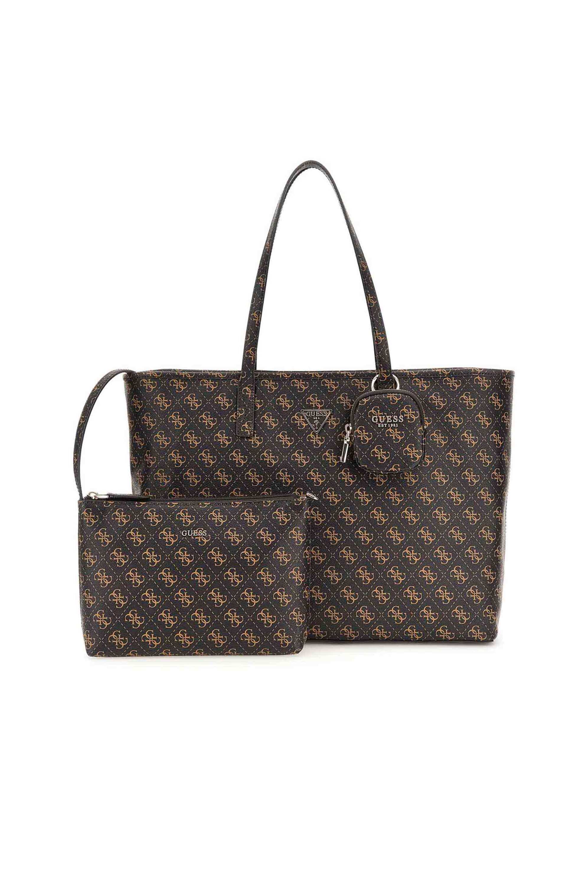 Γυναικεία τσάντα shopper. All-over logo print. Kλείσιμο με φερμουάρ. Εξοπλισμένο με ενισχυμένη βάση και προστατευτικά πόδια. Διαστάσεις: 23 x 17 x 4,5 cm. Προέλευση: Ινδονησία. 100% polyurethane SHOP & TRADE AEBE