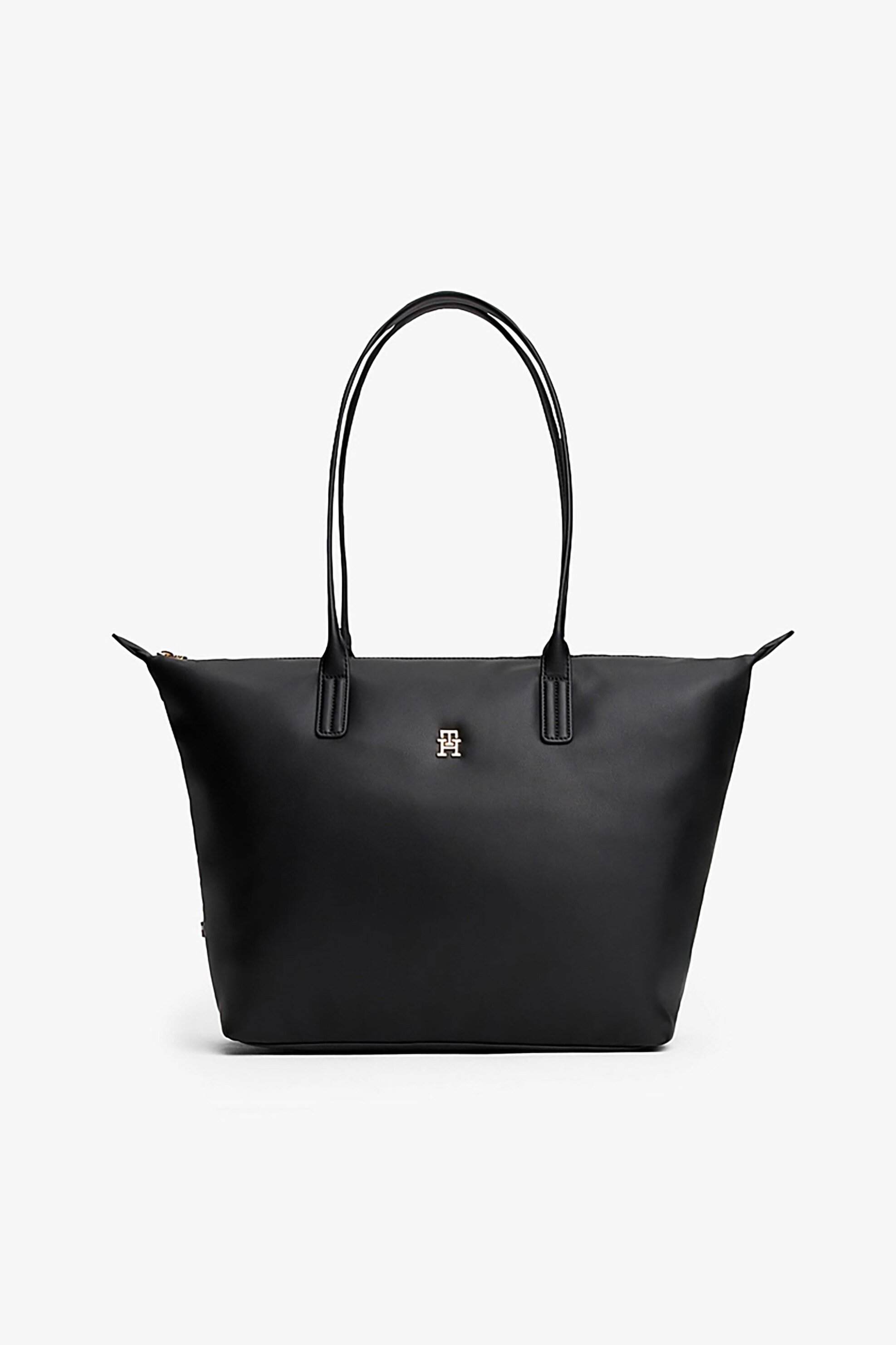 Γυναικεία τσάντα tote. Mεταλλικό μονόγραμμα. Κλείσιμο με φερμουάρ. Δύο λαβές στο πάνω μέρος. Μία κύρια θήκη. Μία εσωτερική τσέπη. Διαστάσεις: 51 x 14 x 32 cm. Προέλευση: ID. 100% polyurethane SHOP & TRADE AEBE