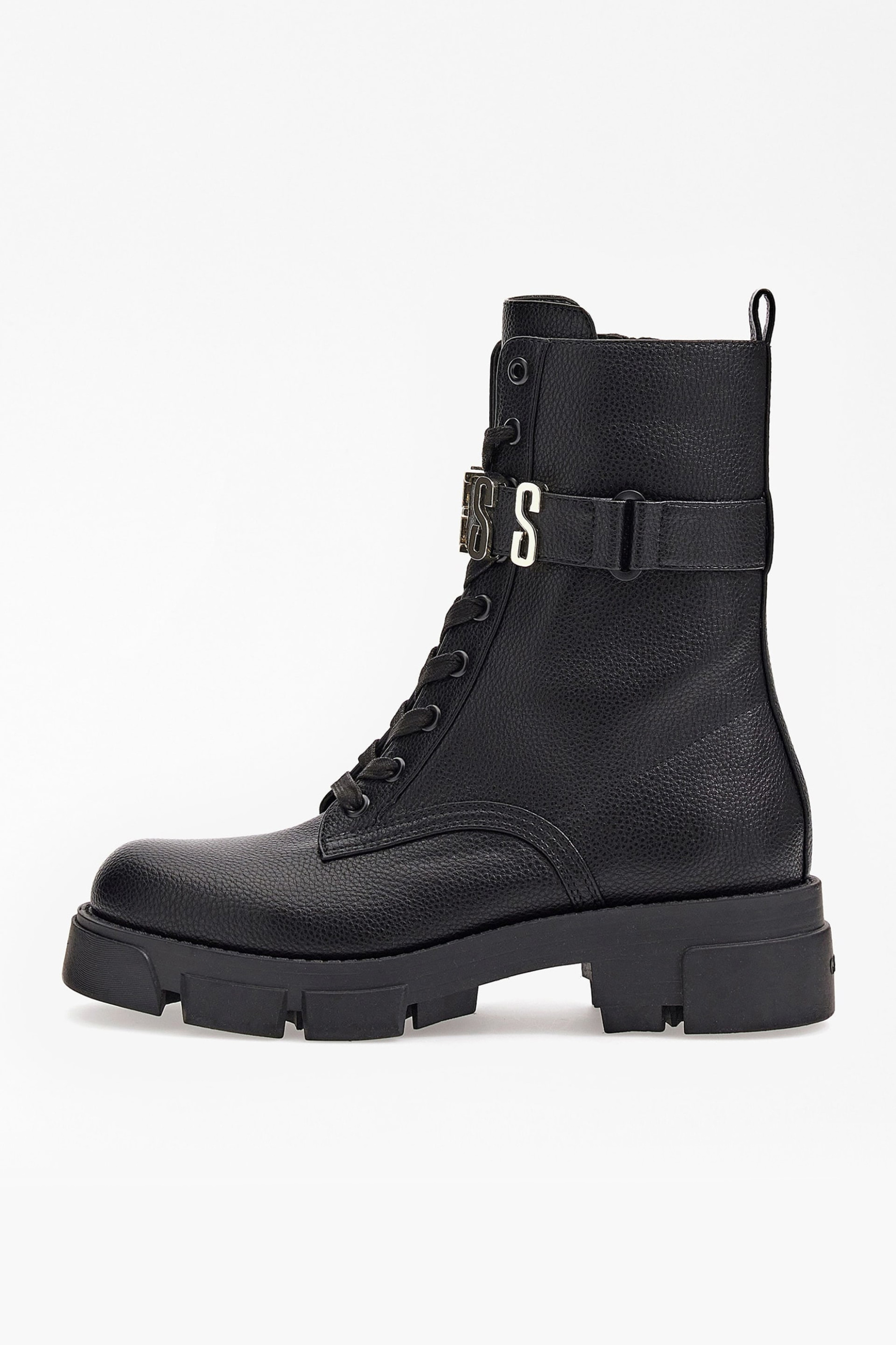 Γυναικείο μποτάκι. Μονόχρωμο. Μεταλλικό λογότυπο στο μπροστινό μέρος. Δέσιμο με κορδόνια. Κλείσιμο με φερμουάρ στο πλάϊ. Ύψος τακουνιού: 4.5 cm. Σόλα από λάστιχο για απορρόφηση κραδασμών. 100% polyurethane