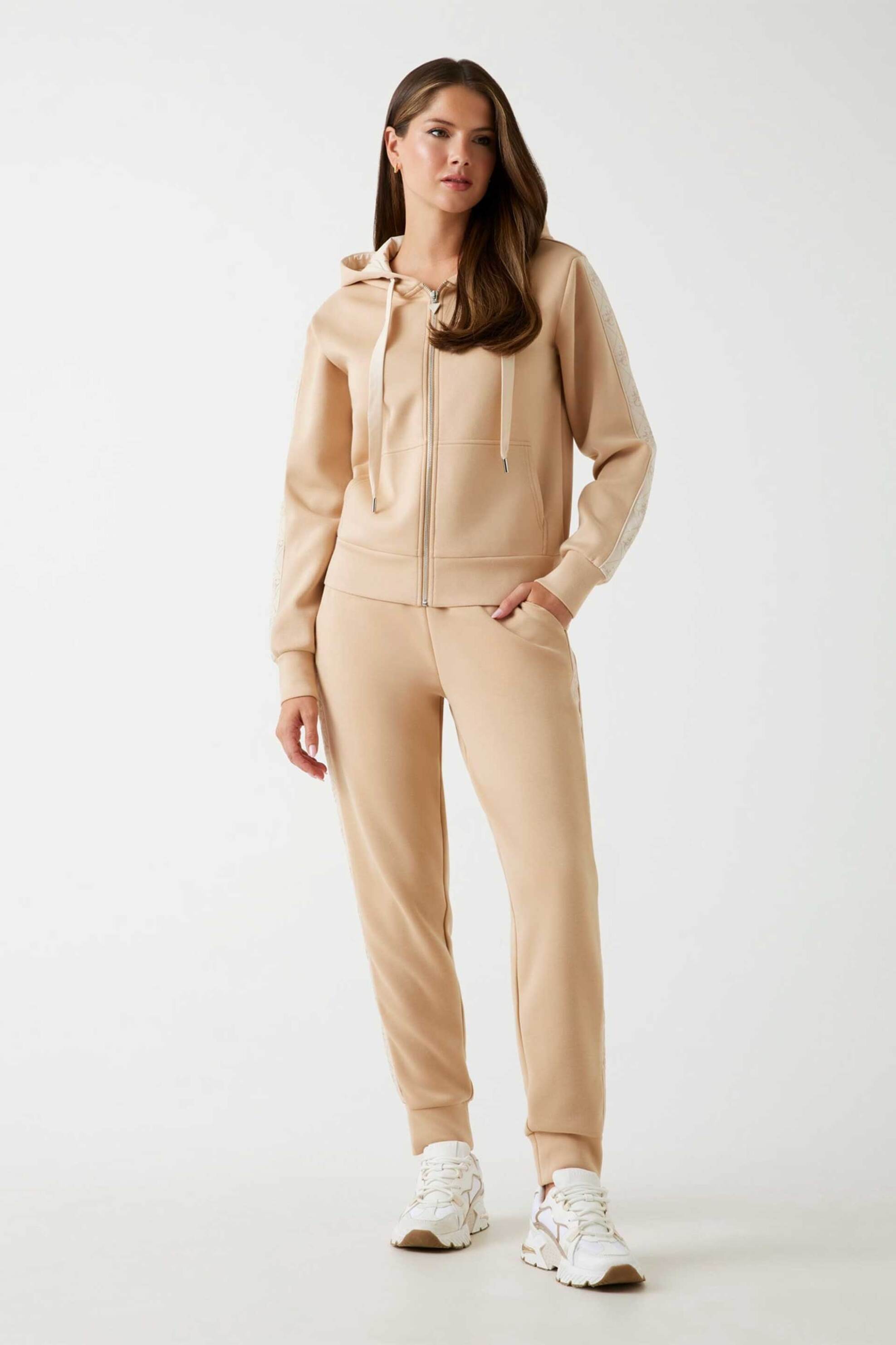Γυναικείο παντελόνι φόρμας. Μονόχρωμο. Λωρίδα με λογότυπο στο πλάι. Ελαστική μέση με κορδόνι. Τσέπες στο πλάι και στο πίσω μέρος. Προέλευση: Κίνα. 48% polyester, 42% βισκόζη, 10% elastane SHOP & TRADE AEBE