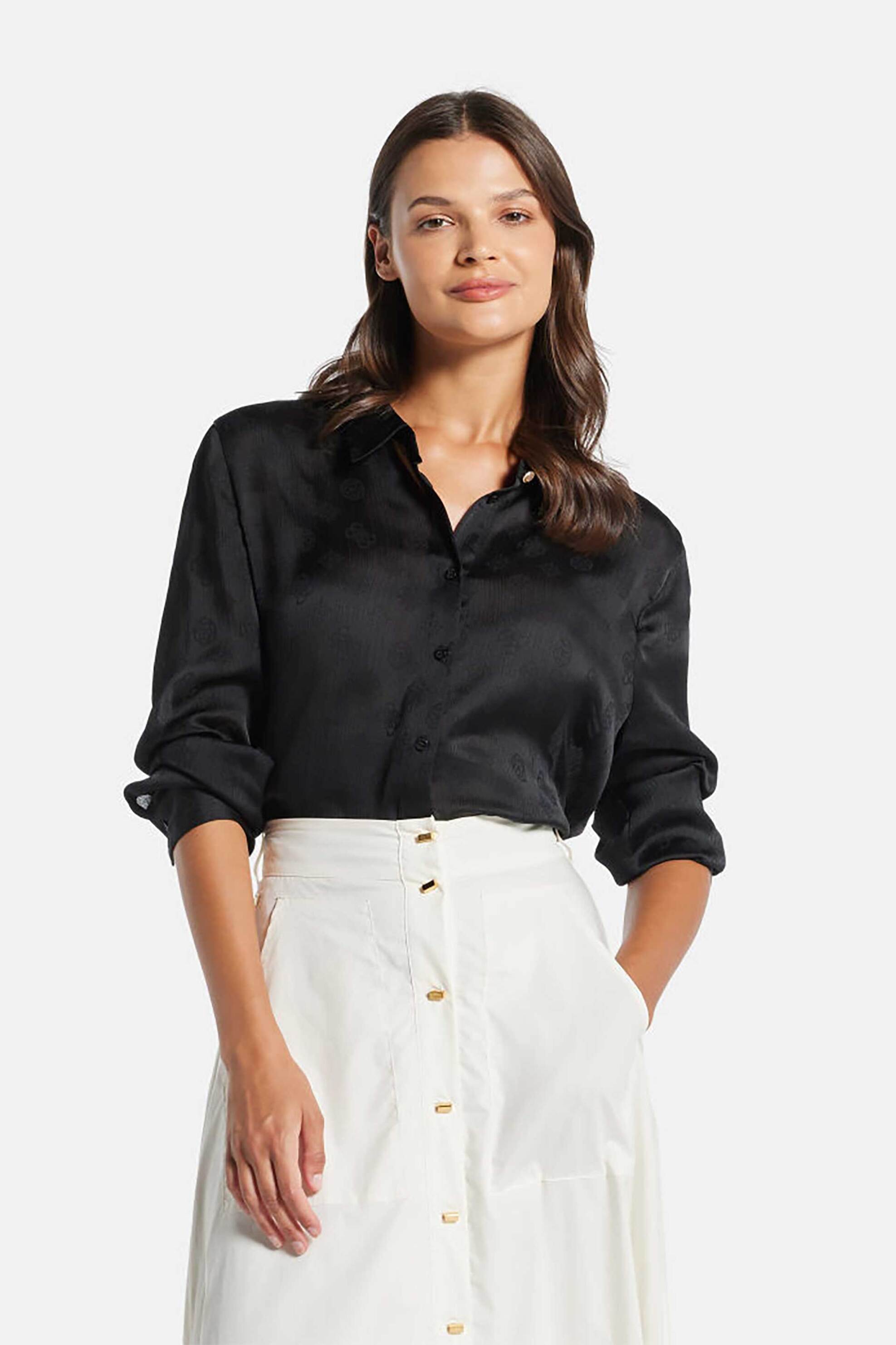 Γυναικείο πουκάμισο. All-over print. Κλασικός γιακάς. Μακρύ μανίκι. Μανσέτες με κουμπιά. Regular fit. Προέλευση: Κίνα. 100% polyester SHOP & TRADE AEBE