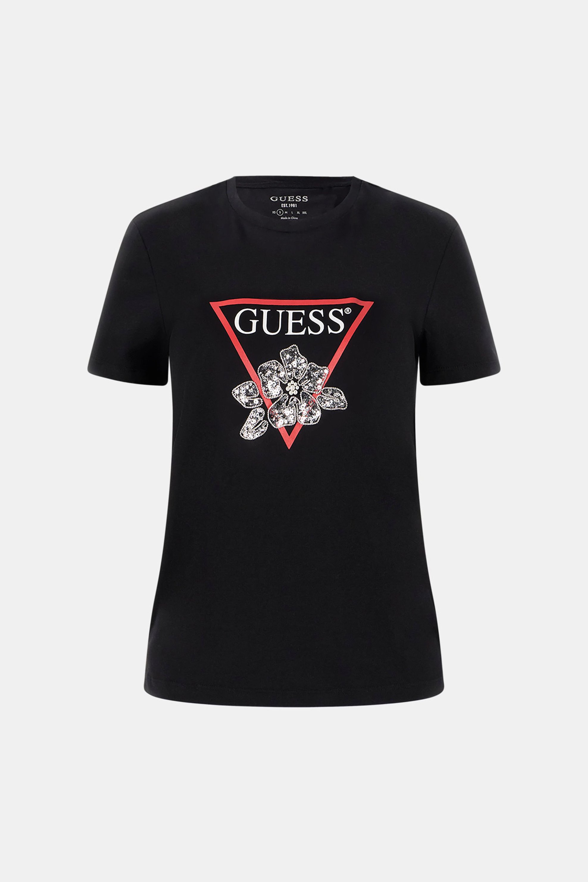 Γυναικείο T-shirt. Floral print. Ανάγλυφο λογότυπο. Στρογγυλή λαιμόκοψη. Relaxed fit. Προέλευση: Κίνα. 100% βαμβάκι SHOP & TRADE AEBE