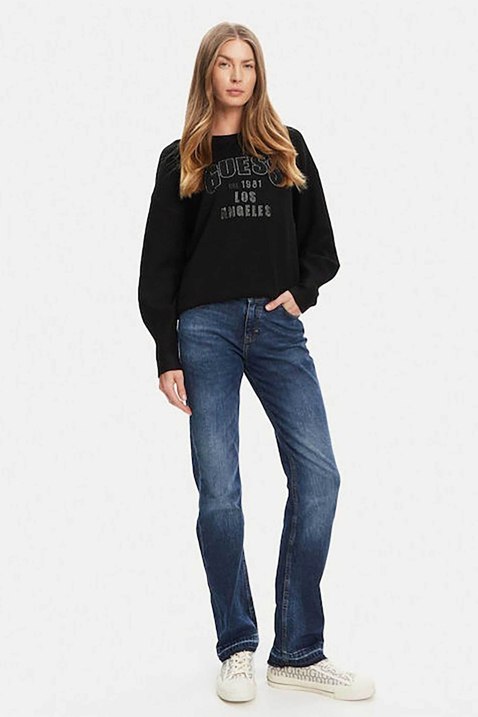 Γυναικείο τζιν παντελόνι. Denim. Πεντάτσεπο. Κλείσιμο με κουμπί και φερμουάρ. Logo patch στο πίσω μέρος. Cigarette fit Προέλευση: Πακιστάν. 79% βαμβάκι, 20% cellulose, 1% elastane SHOP & TRADE AEBE